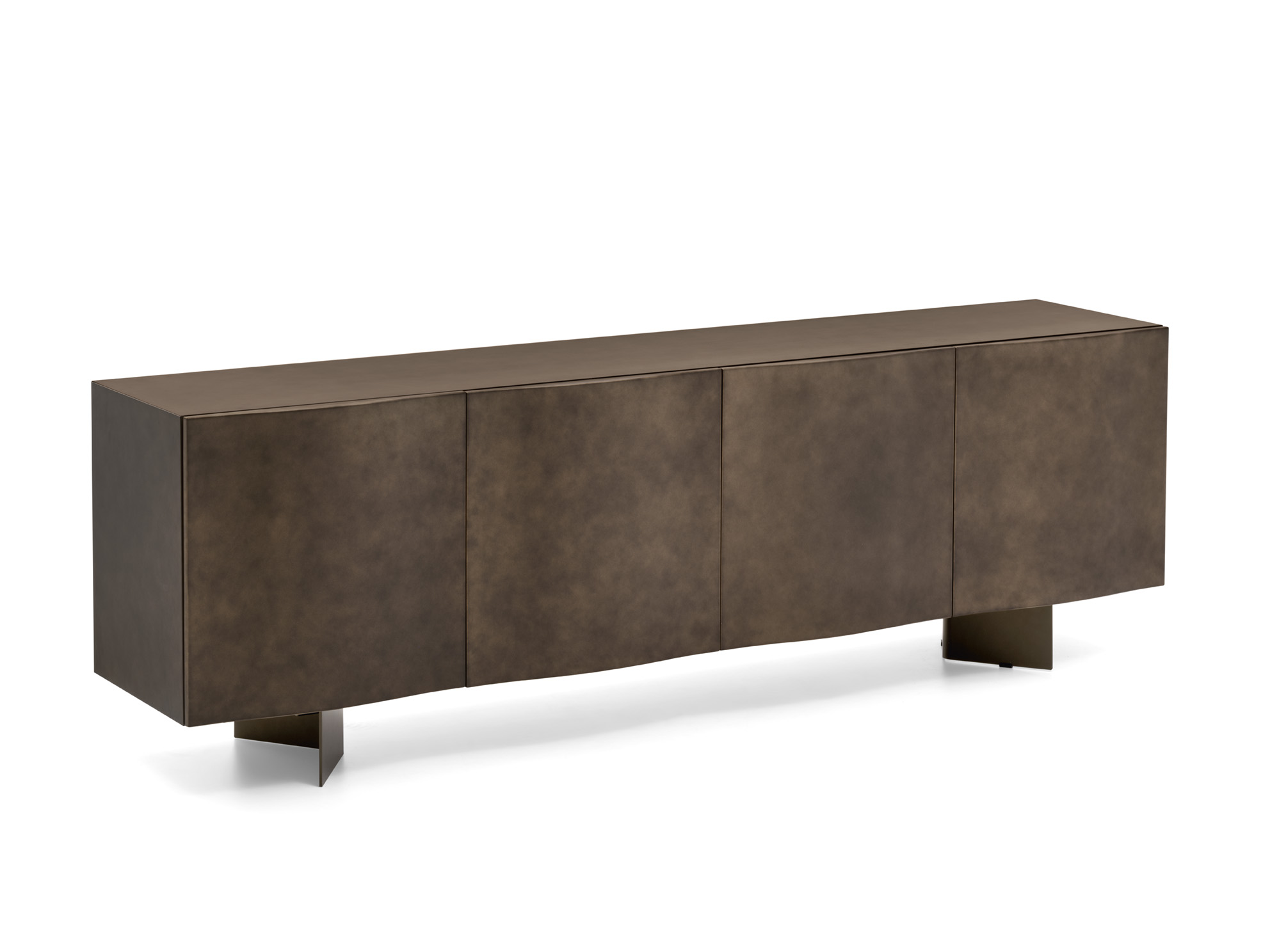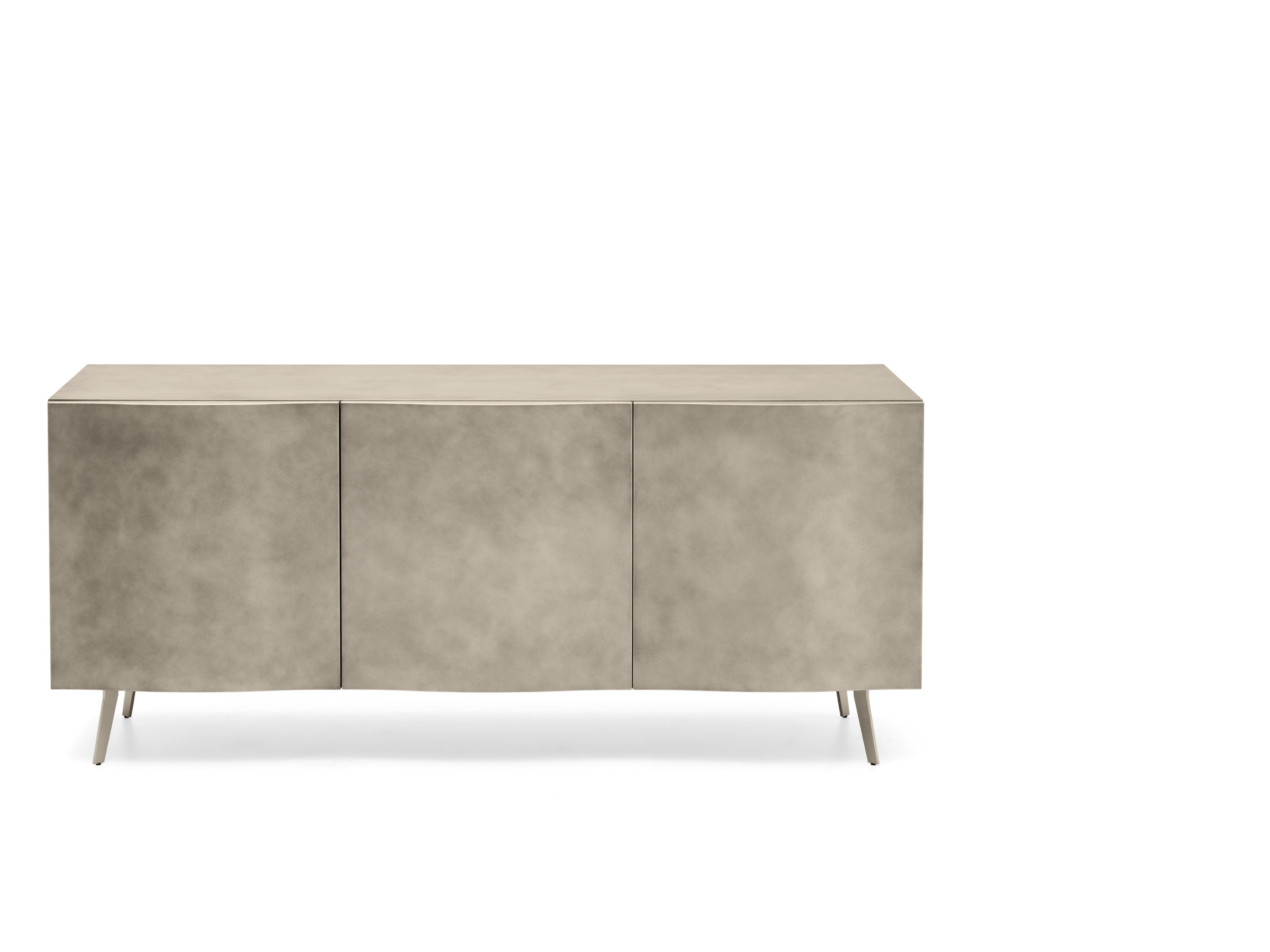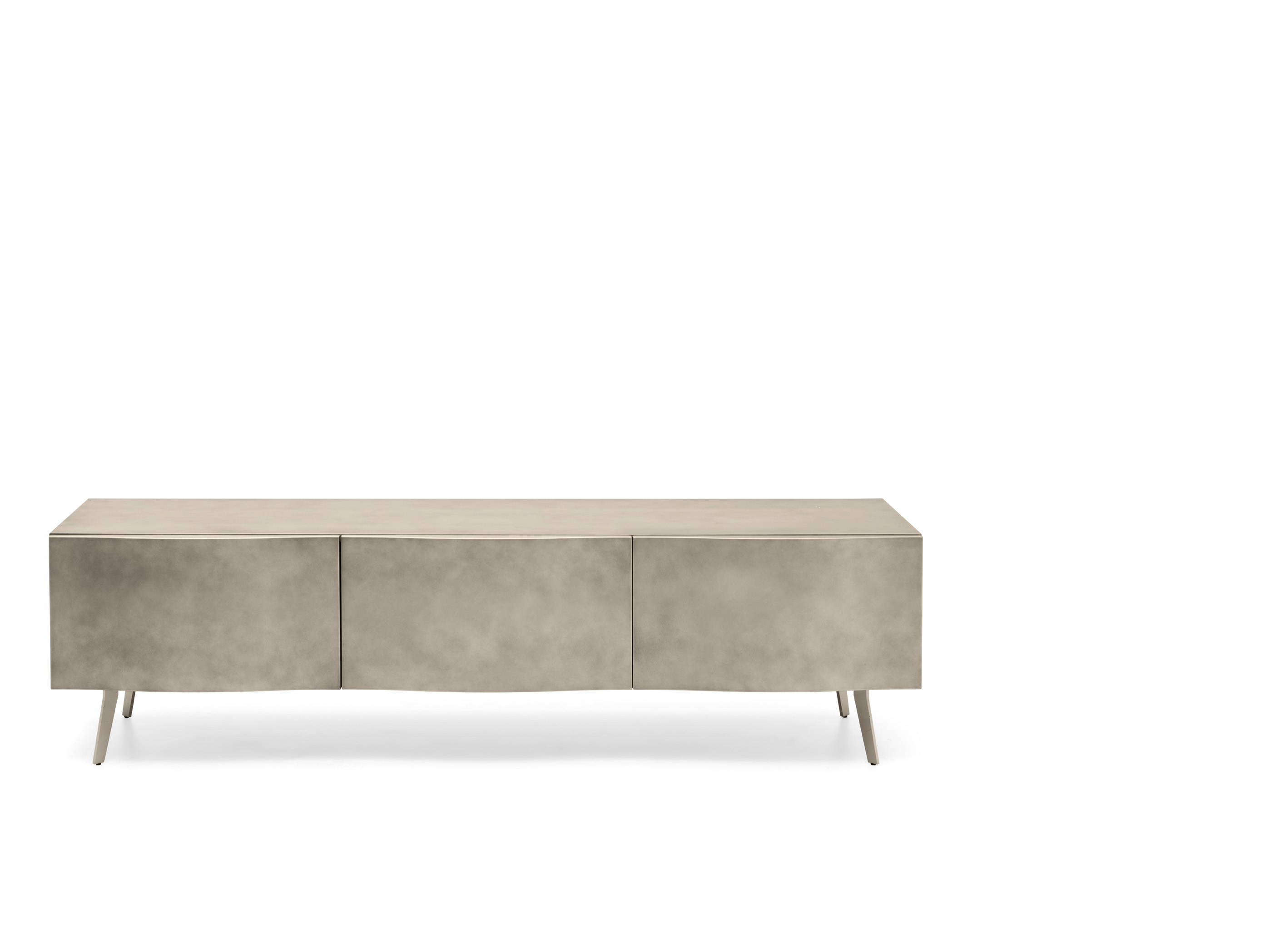 Komoda SINUOSA to nowoczesny kredens włoskiej marki Calligaris zaprojektowany przez projektanta Gino Carollo. Model wyróżnia się charakterystycznym frontem z falującą linią drzwi, która tworzy dynamiczny, rzeźbiarski efekt na całej szerokości mebla.