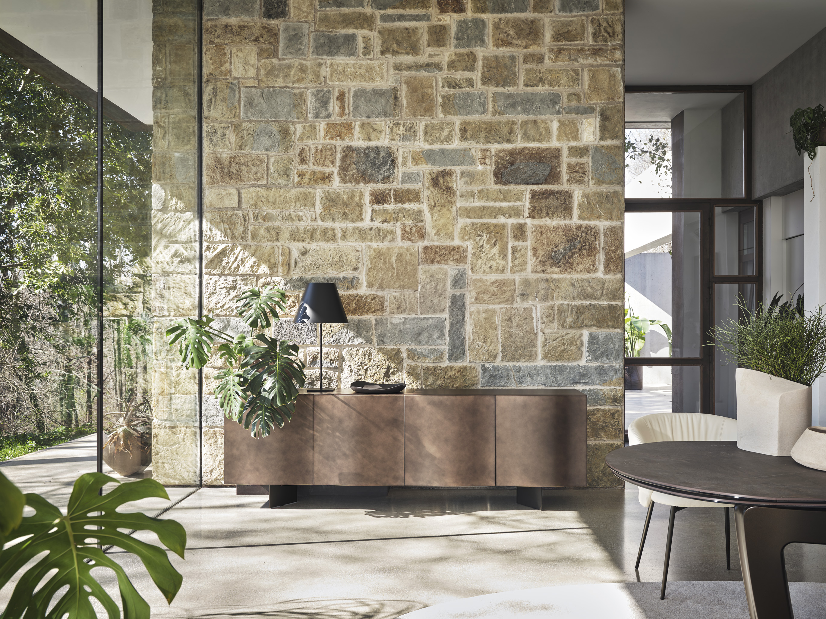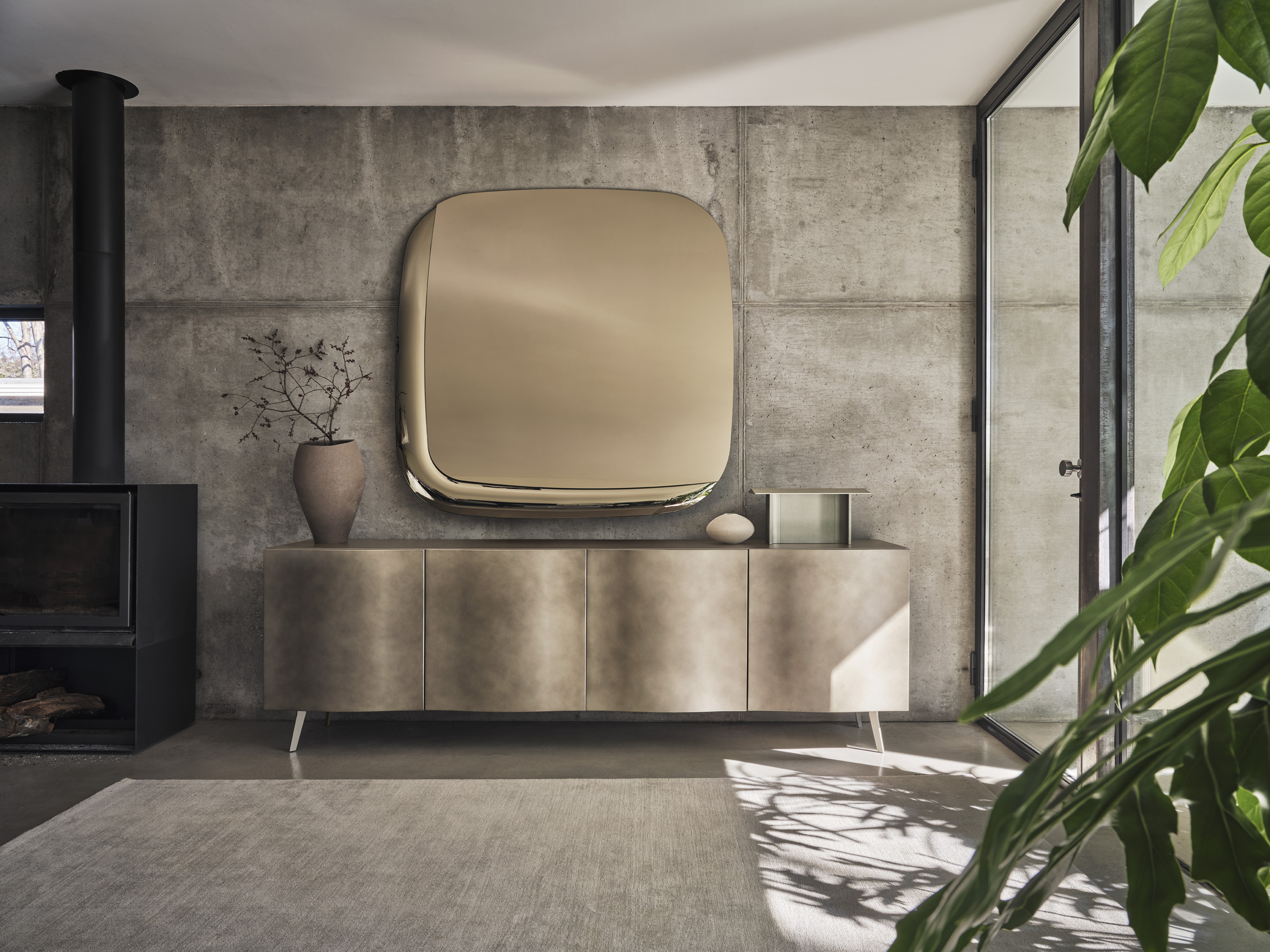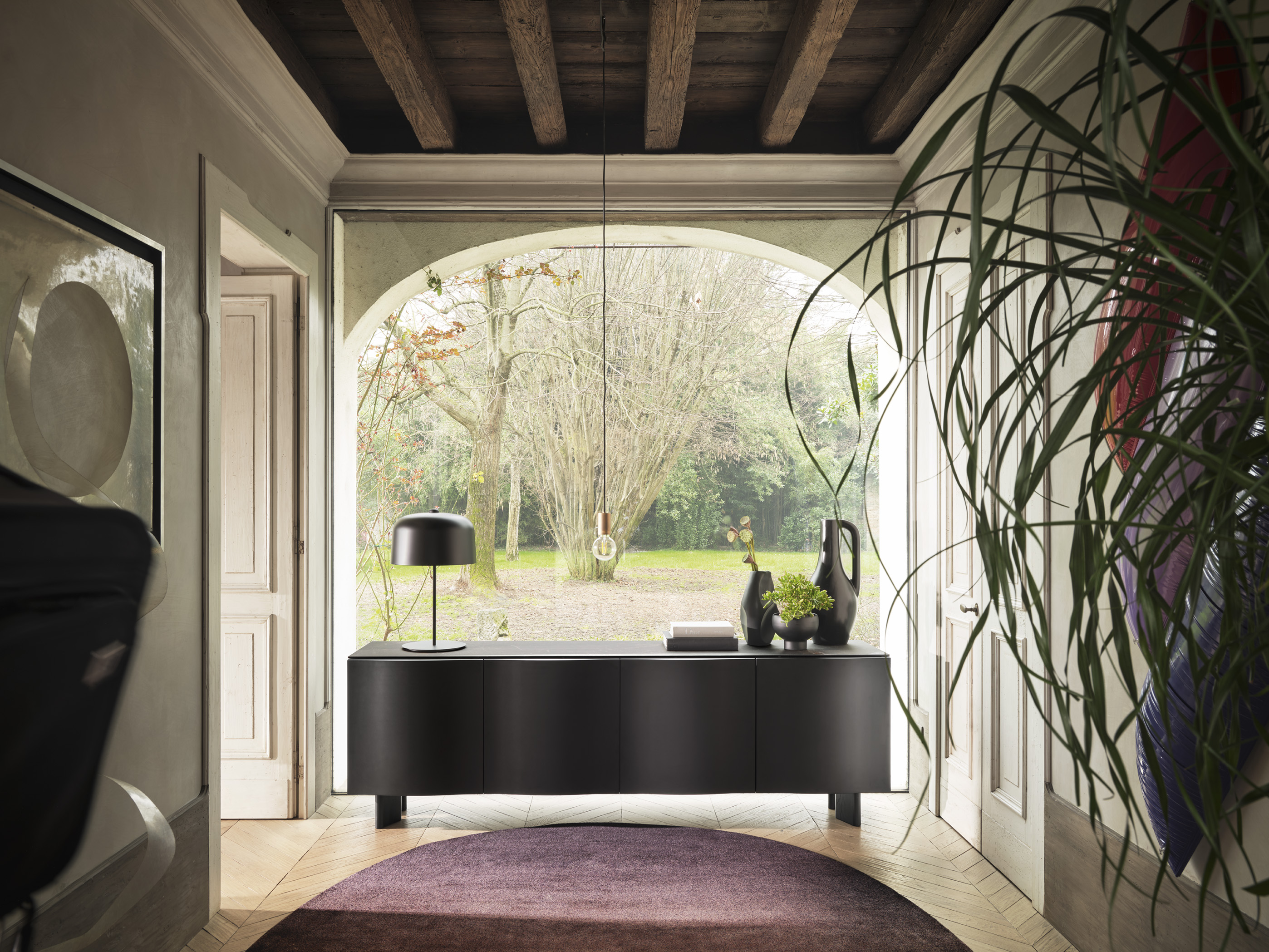 Komoda SINUOSA to nowoczesny kredens włoskiej marki Calligaris zaprojektowany przez projektanta Gino Carollo. Model wyróżnia się charakterystycznym frontem z falującą linią drzwi, która tworzy dynamiczny, rzeźbiarski efekt na całej szerokości mebla.