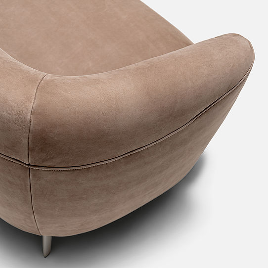 Rolf Benz ELVA to kompaktowa, elegancka sofa o lekkiej, „unoszącej się” wizualnie formie. Charakterystyczne są subtelne, miękkie linie i dekoracyjne przeszycie biegnące przez siedzisko, oparcie i podłokietniki.