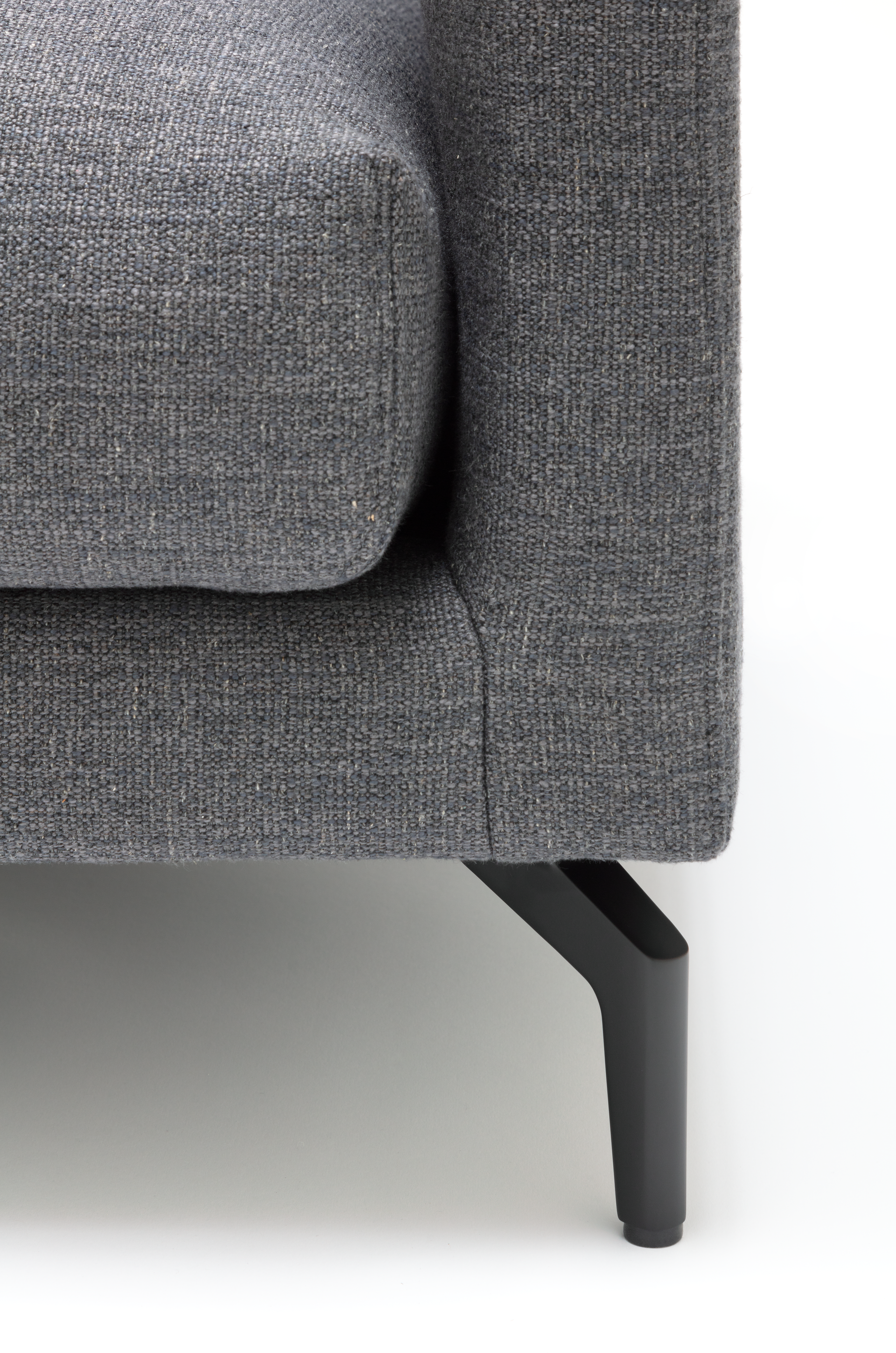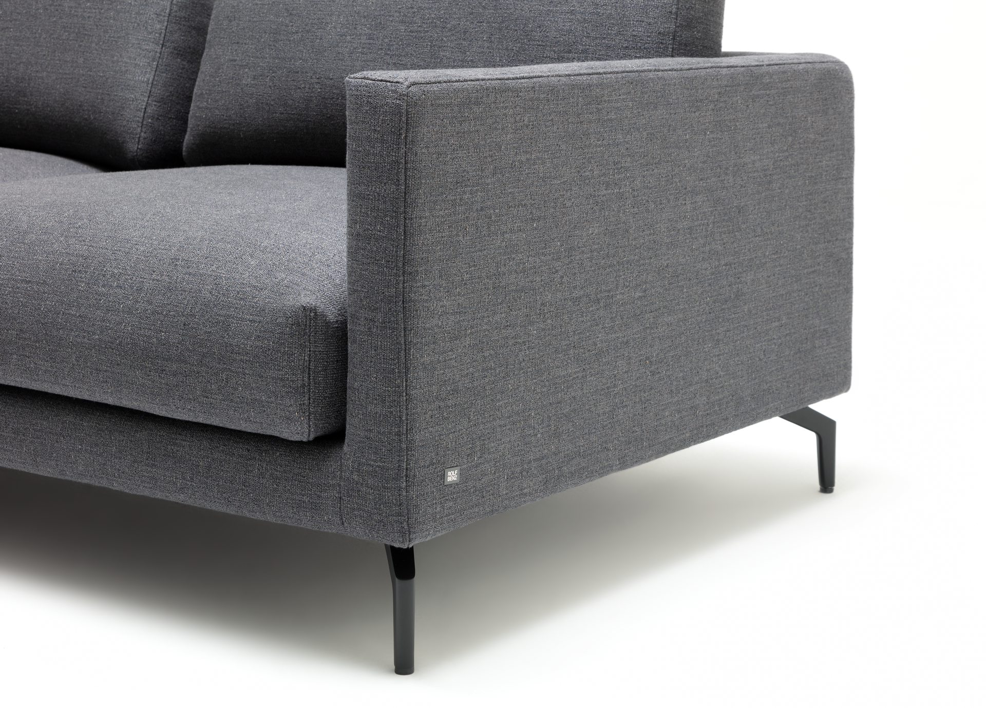 Oparcia i podłokietniki biegną tutaj w jednej linii estetycznej i funkcjonalnej, dzięki czemu różne elementy systemu dają się łączyć w różnorodne konfiguracje. Łączenie następuje za pomocą niewidocznych, ruchomych elementów montażowych, za pomocą który z łatwością zmodyfikujesz ustawienie elementów sofy JOLA w swoim domu.