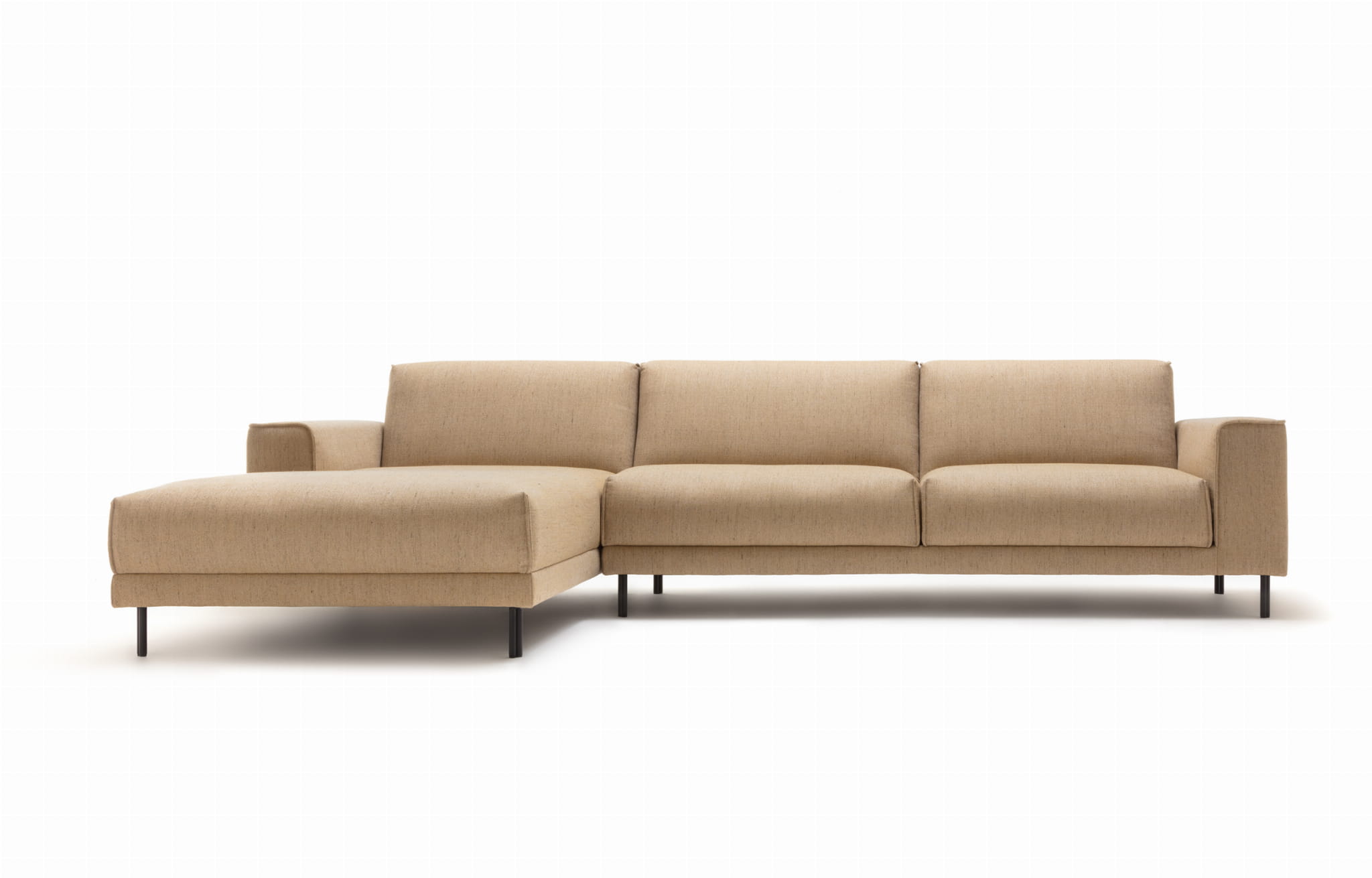 Element z obszernego systemu sof modułowych z możliwością konfigurowania komfortu: głębokość i miękkość sofy, rodzaju podłokietnika, nóżek.