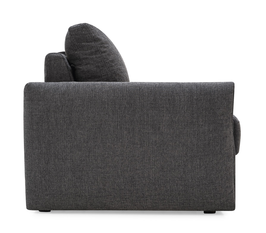 Jednym z charakterystycznych elementów projektu są poduszki oparciowe z delikatnie zawiniętą górną krawędzią, które nadają sofie lekkości i miękkiego charakteru wizualnego. Dzięki temu DARWIN wygląda bardziej jak designerska sofa niż klasyczna sofa rozkładana.