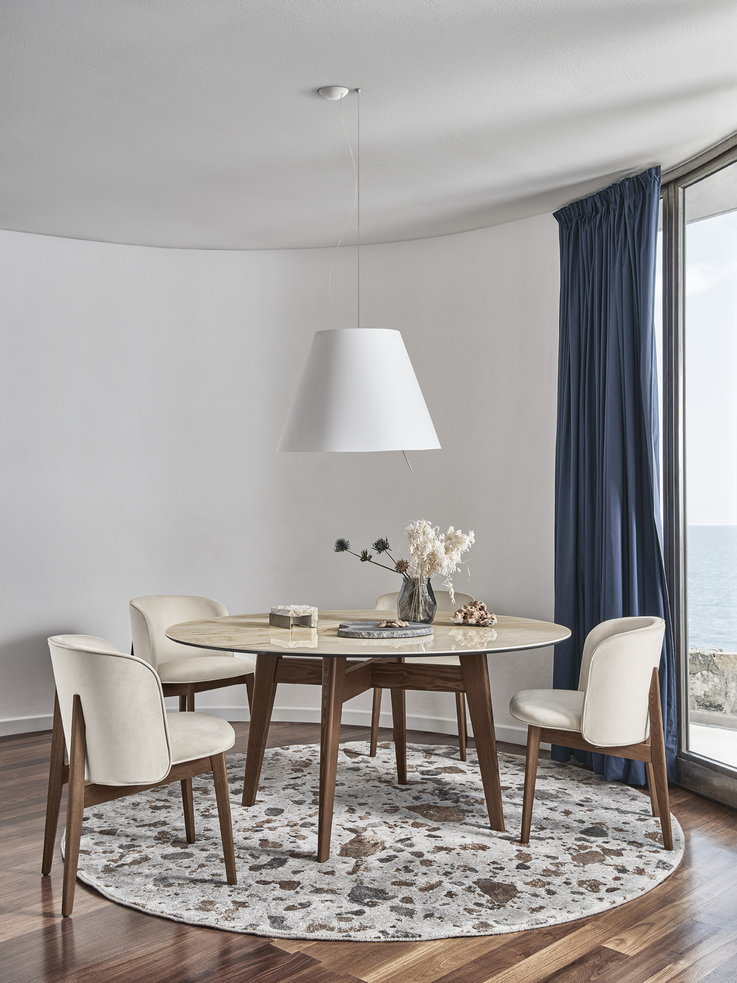 Okrągły stół Abrey to elegancki model włoskiej marki Calligaris, zaprojektowany przez duet Gabriele i Oscar Buratti. Charakteryzuje się prostą, architektoniczną formą oraz solidną podstawą z litego jesionu. Minimalistyczna konstrukcja eksponuje piękno blatu i naturalnych materiałów, dzięki czemu stół dobrze wpisuje się zarówno w nowoczesne, jak i bardziej klasyczne wnętrza jadalni.