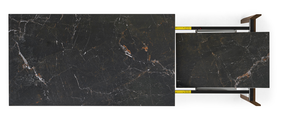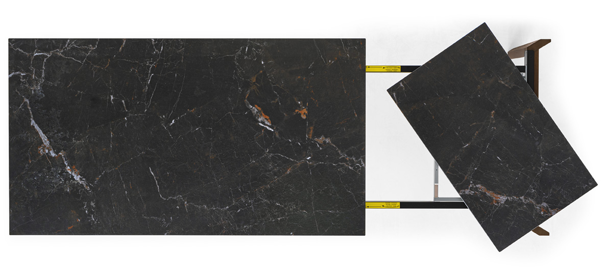 nogi pozostają przy narożnikach, także po rozłożeniu – co daje więcej miejsca na krzesła.