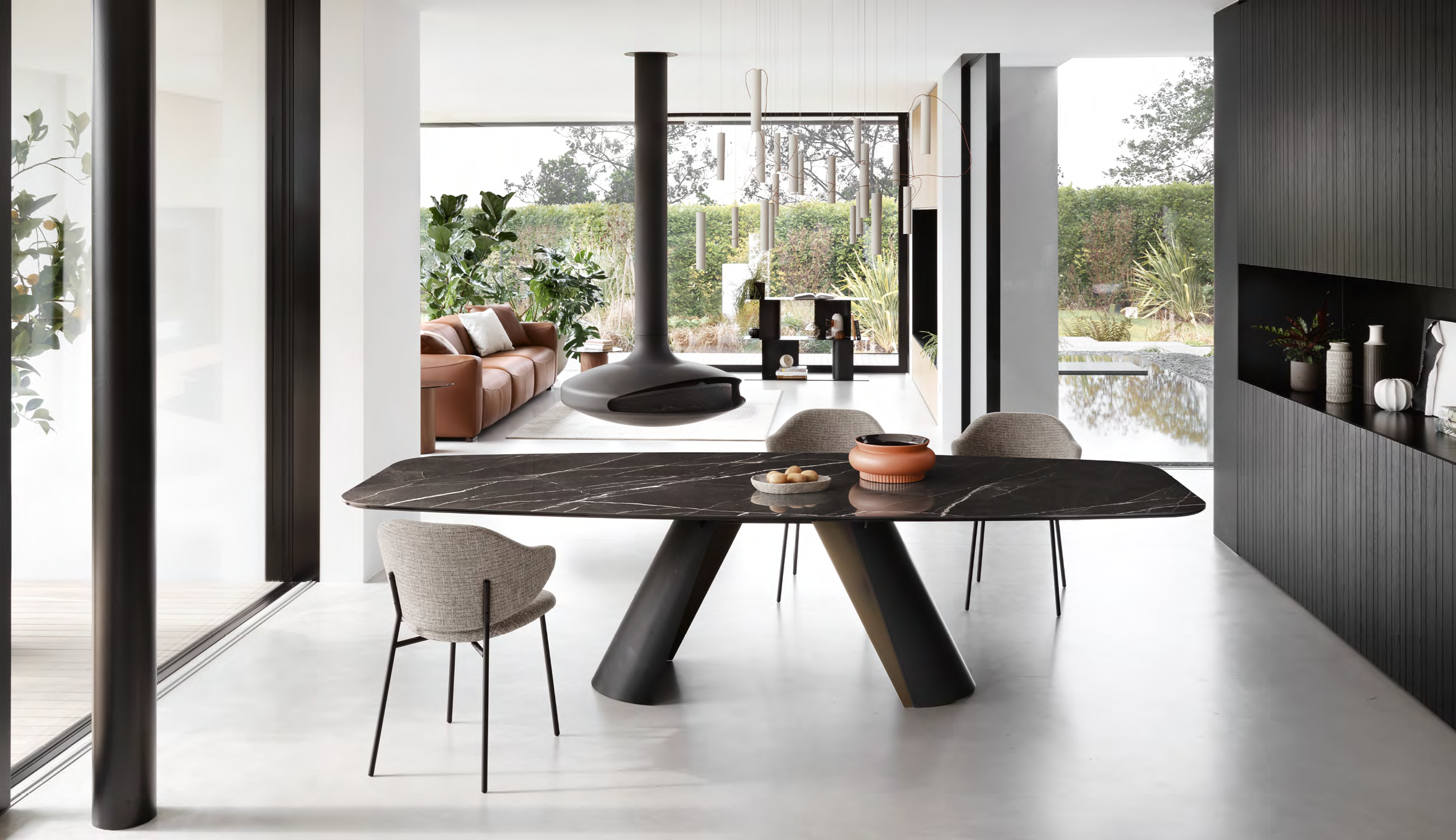 Tworzą one półcylindryczną, rzeźbiarską formę – charakterystyczny element stołu.