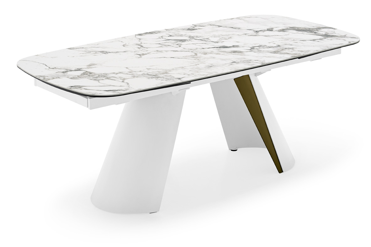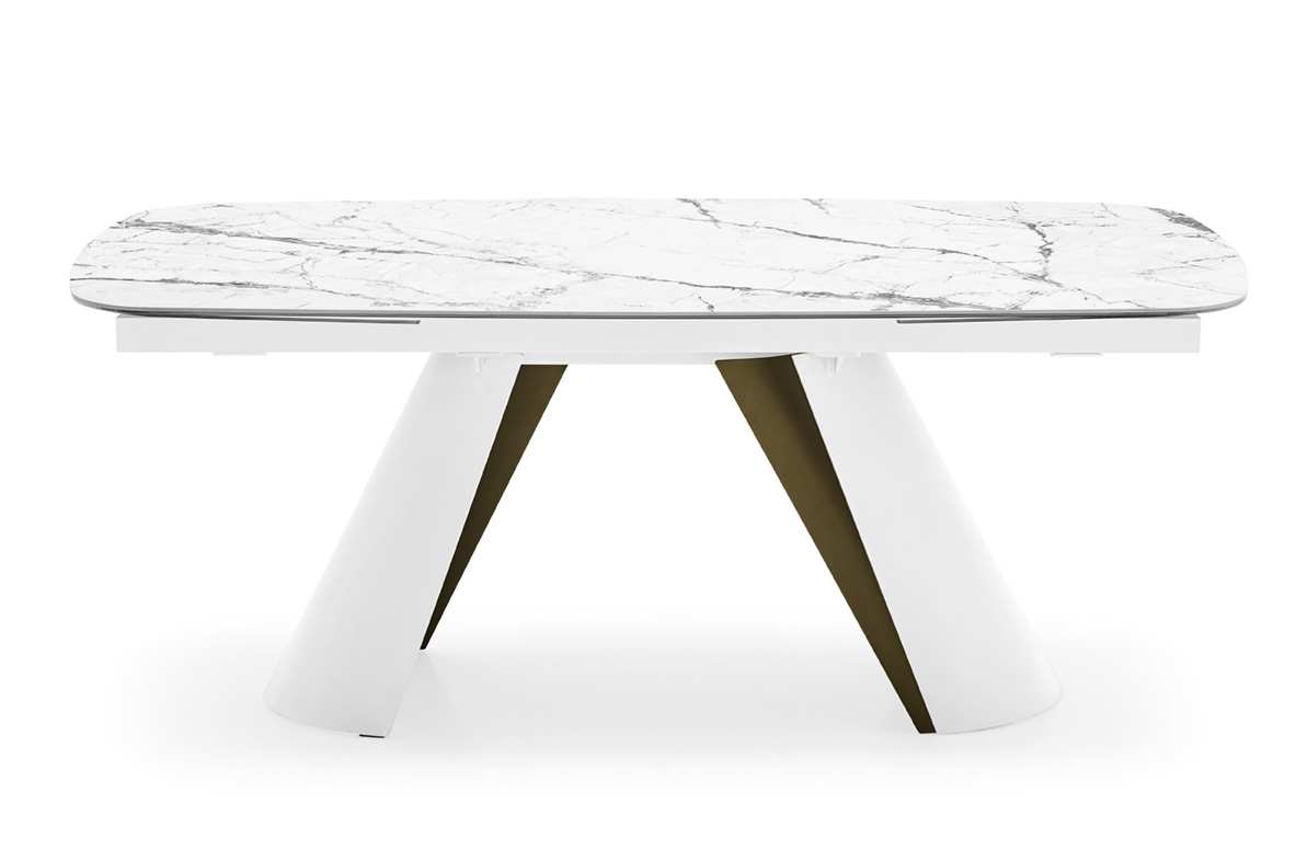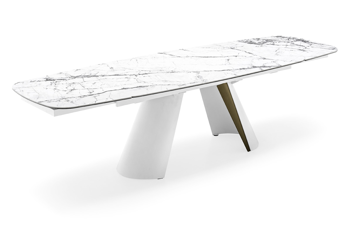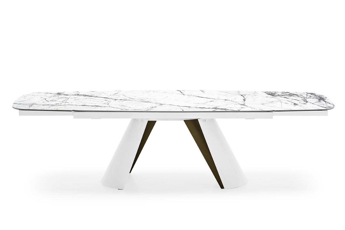Apian to designerski stół jadalniany marki Calligaris z bardzo charakterystyczną centralną podstawą z metalu. Wersja z owalnym (elliptical) blatem rozkładanym należy do najbardziej efektownych wariantów tego modelu.