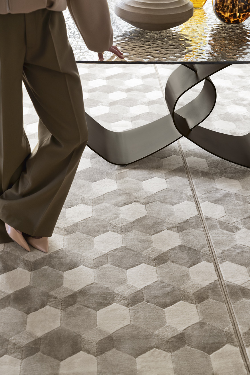 Inspiracją były elipsy w sztuce Turi Simetiego, dlatego podstawa tworzy geometryczny układ przypominający przenikające się kształty.