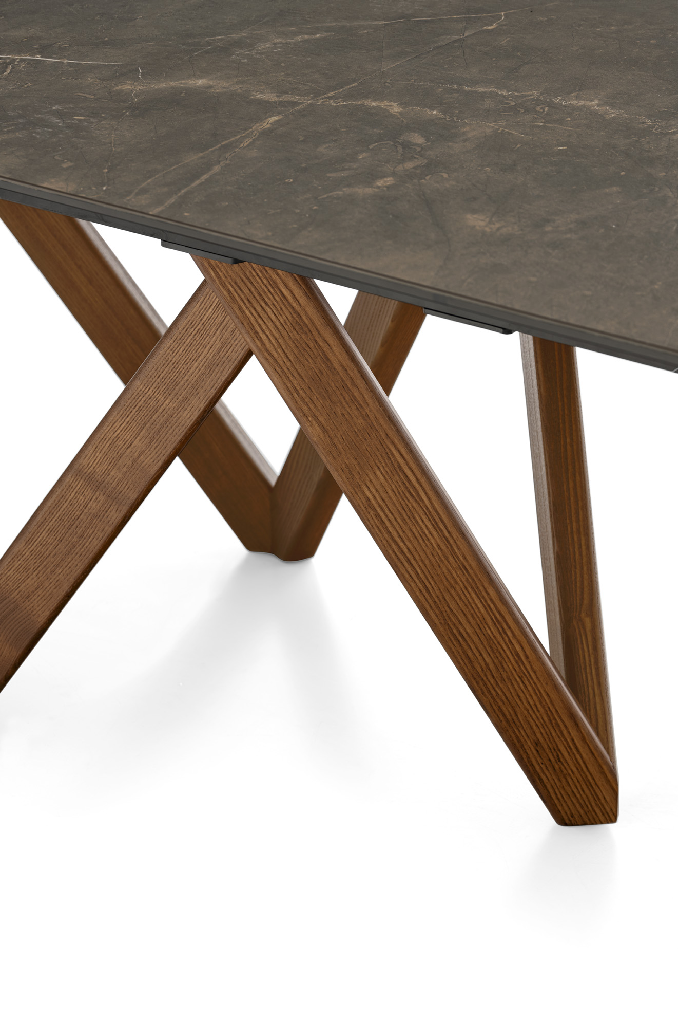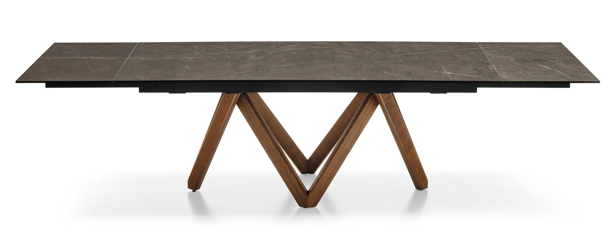 Cartesio to jeden z najbardziej charakterystycznych stołów w kolekcji Calligaris. Wersja z prostokątnym blatem rozkładanym łączy bardzo wyrazistą, geometryczną podstawę z funkcjonalnym systemem powiększania stołu.