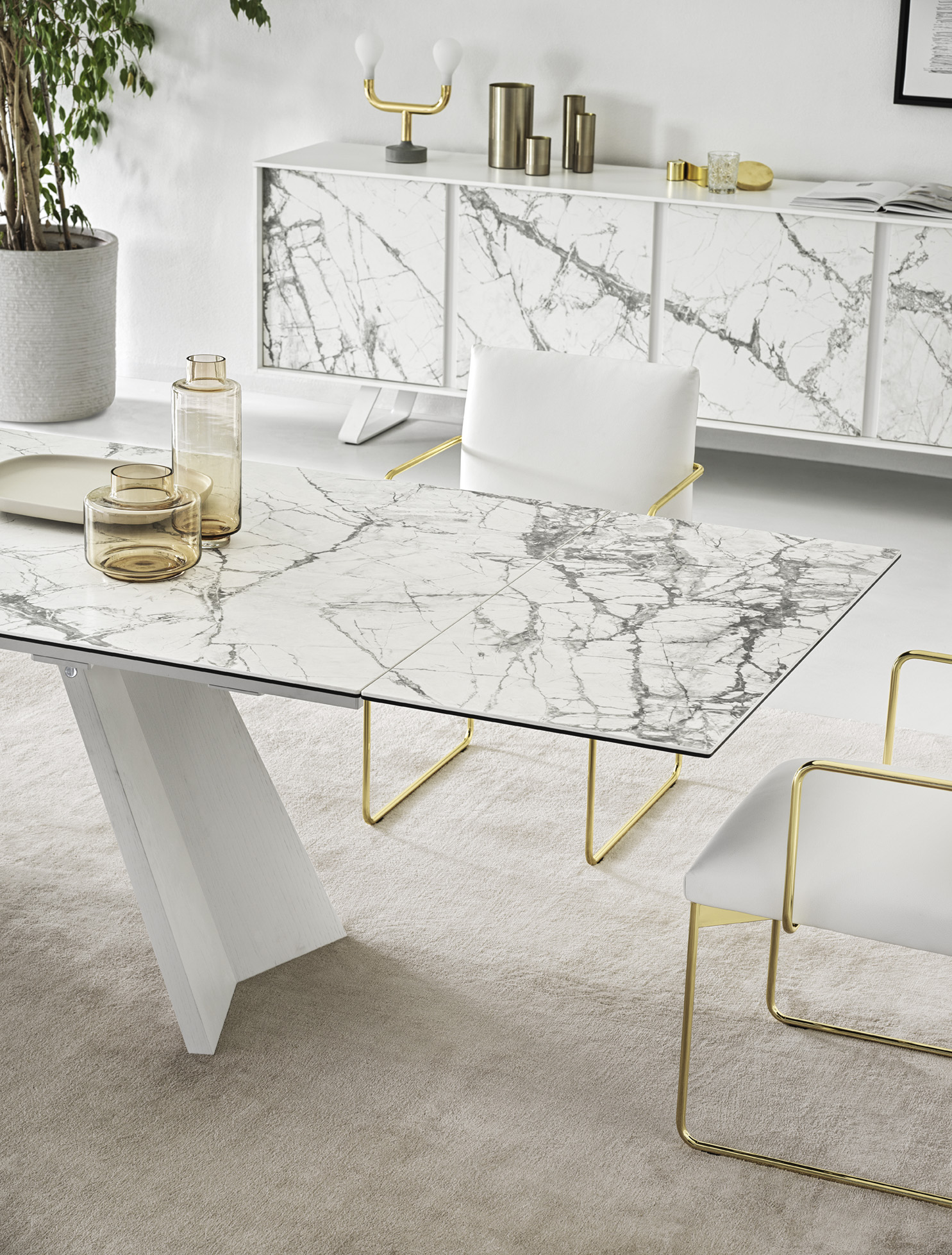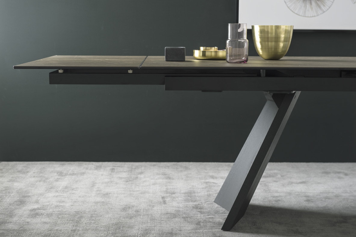 Blat wykonany z ceramiki nadaje mu elegancki, kamienny charakter oraz wysoką odporność na codzienne użytkowanie. Dzięki funkcji rozkładania ICARO doskonale sprawdza się zarówno na co dzień, jak i podczas spotkań w większym gronie.