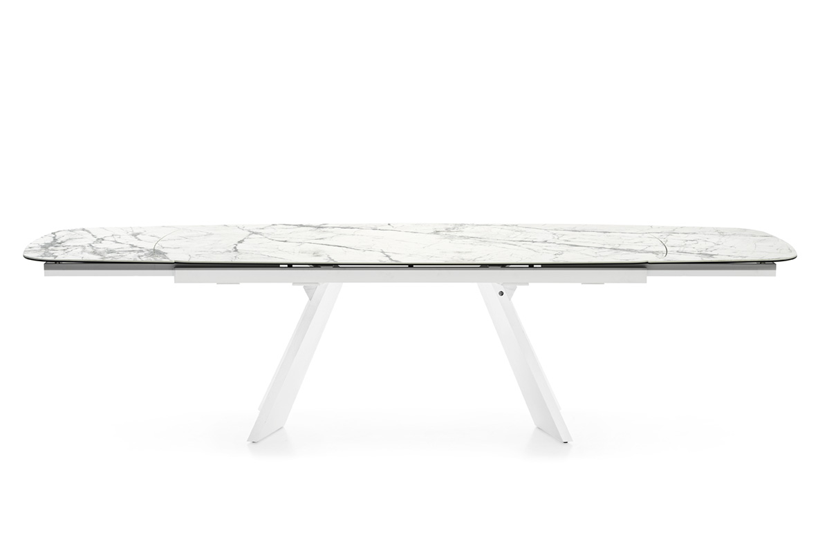 Blat wykonany z ceramiki nadaje mu elegancki, kamienny charakter oraz wysoką odporność na codzienne użytkowanie. Dzięki funkcji rozkładania ICARO doskonale sprawdza się zarówno na co dzień, jak i podczas spotkań w większym gronie.