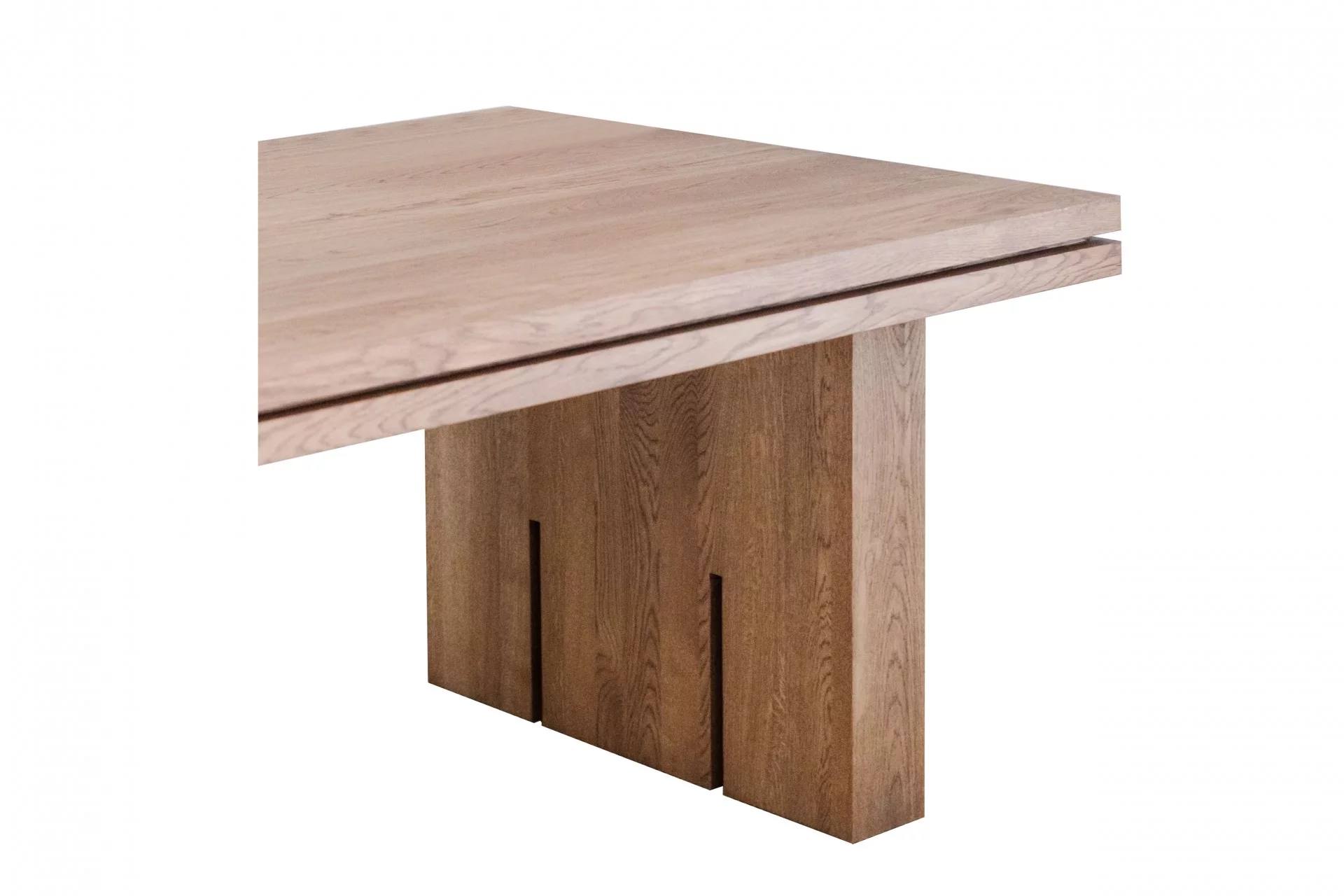Selfia BENCH to masywny, drewniany stół o wyrazistym, surowym charakterze, inspirowany estetyką modern-farmhouse oraz rustykalną prostotą. Jego design opiera się na grubej, solidnej konstrukcji: szerokim blacie, mocnych nogach oraz charakterystycznych nacięciach i wpustach, które nadają stołowi rzemieślniczy, naturalny wygląd.