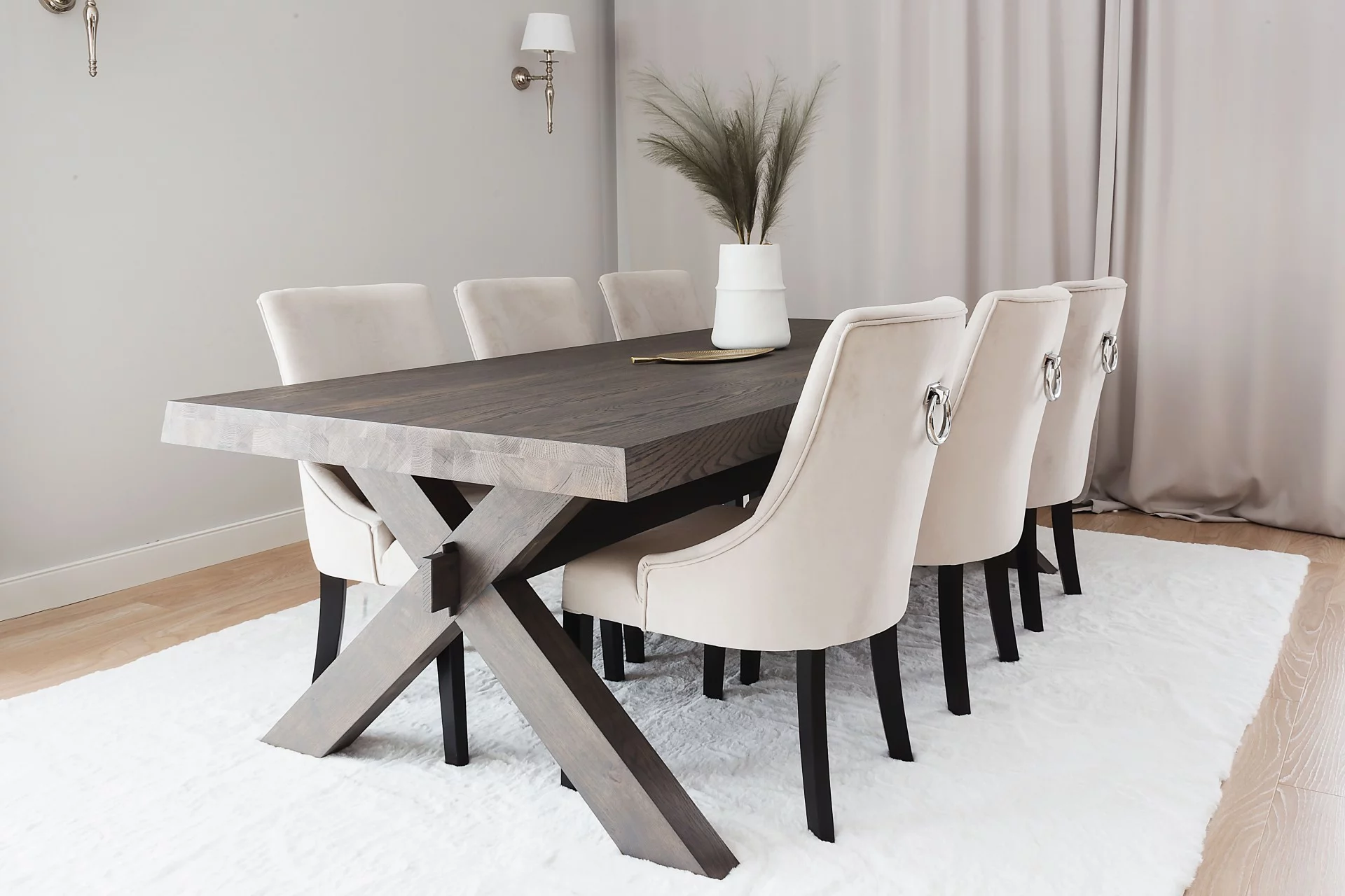 Selfia FARM to masywny, drewniany stół inspirowany stylem farmhouse, zaprojektowany z myślą o dużych, otwartych wnętrzach. Jego forma jest solidna, wyrazista i pełna charakteru: szeroki, gruby blat z naturalnego drewna oraz mocna podstawa o klasycznych proporcjach sprawiają, że stół staje się centralnym punktem całej jadalni lub salonu.
