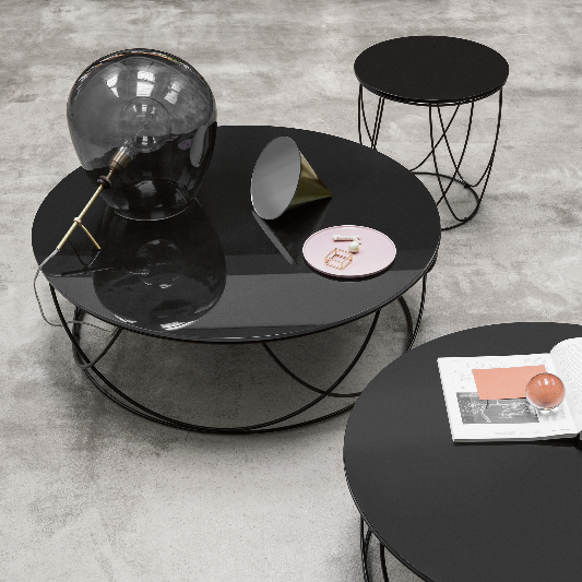 Lekki praktyczny stolik o miękkich i delikatnych liniach. Ażurowa podstawa w kilku kolorach do wyboru oraz blaty ceramiczne, szklane lakierowane lub dymiony dają duże możliwości dopasowania stolika do wnętrza.