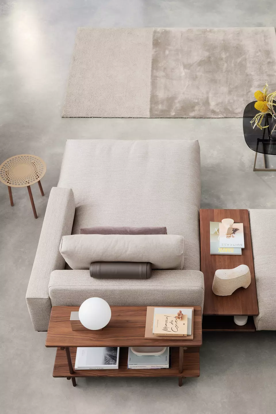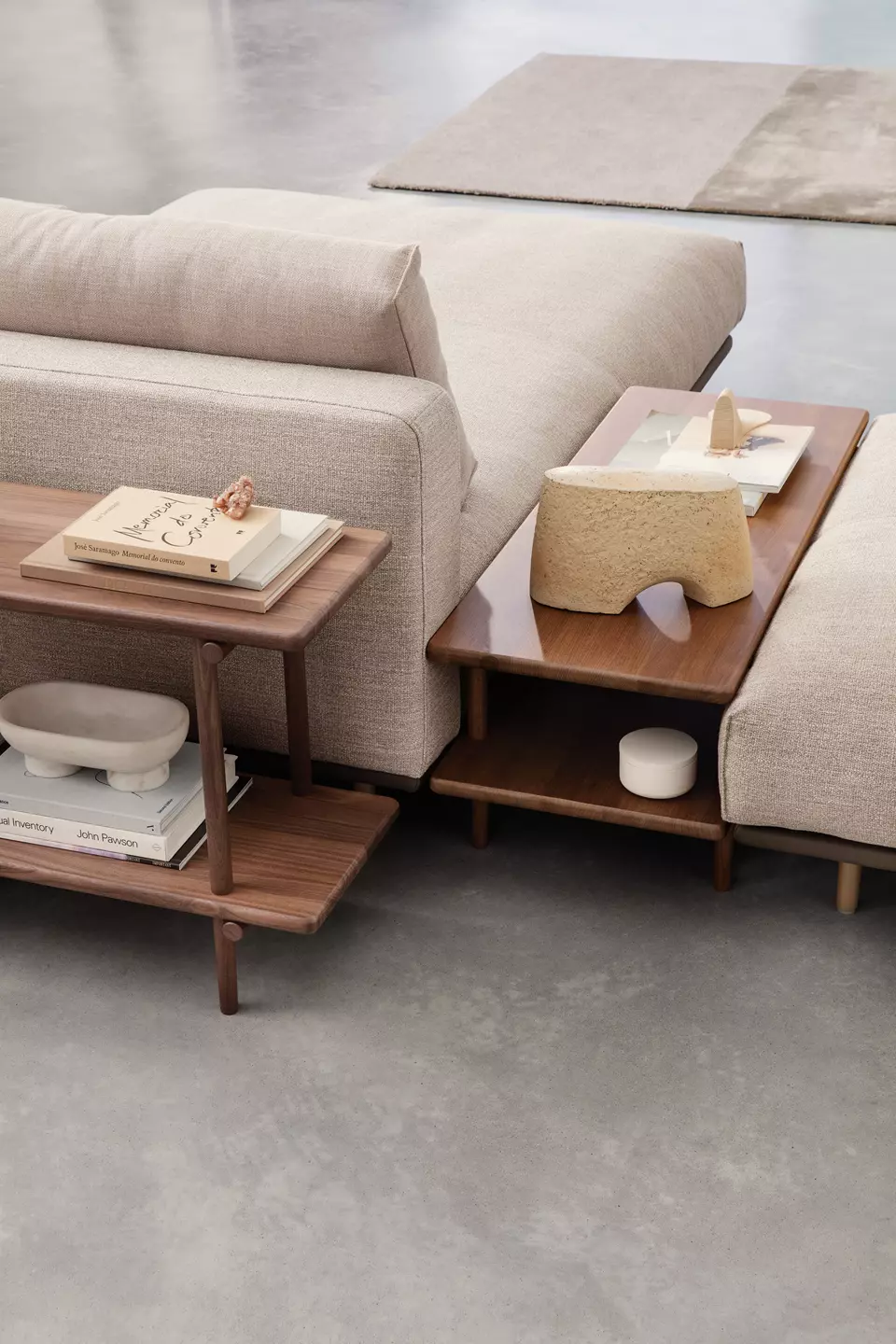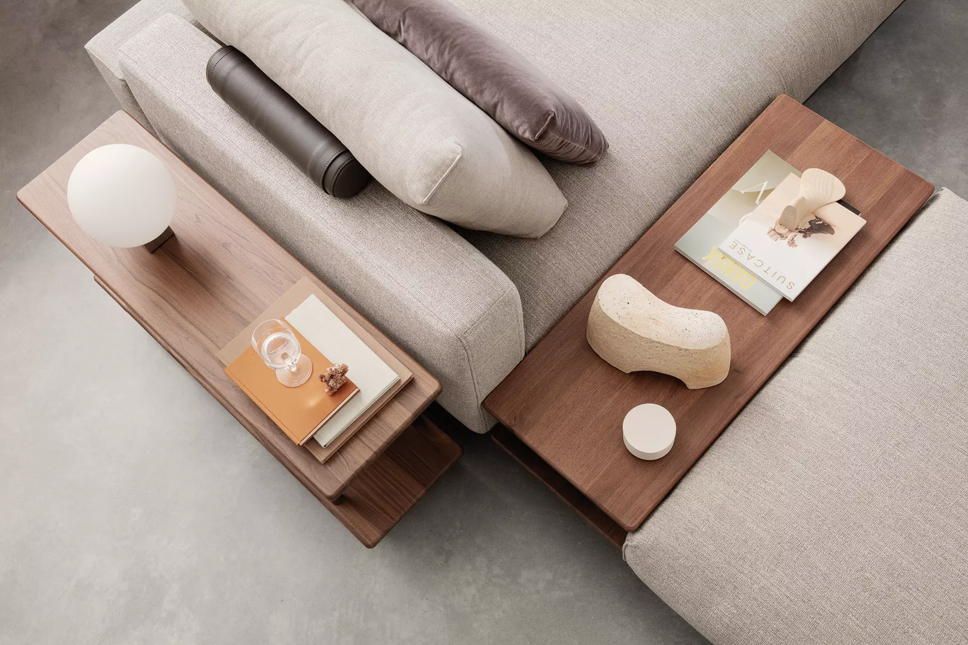 Zastosowanie: może działać jako element integrujący z sofą VOLO — boczny stolik lub część łącząca moduły sofy