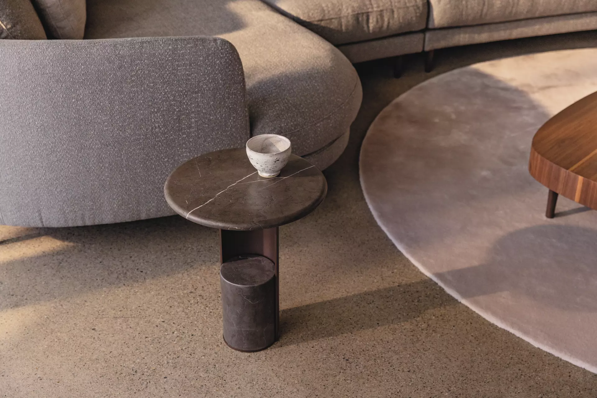 Rolf Benz 972 to mały stolik o wielkiej osobowości. Szlachetny kamień spotyka się tu z delikatną stalą, tworząc formę, która emanuje spokojem i siłą jednocześnie. Subtelny, elegancki, idealny obok sofy — jak biżuteria we wnętrzu.