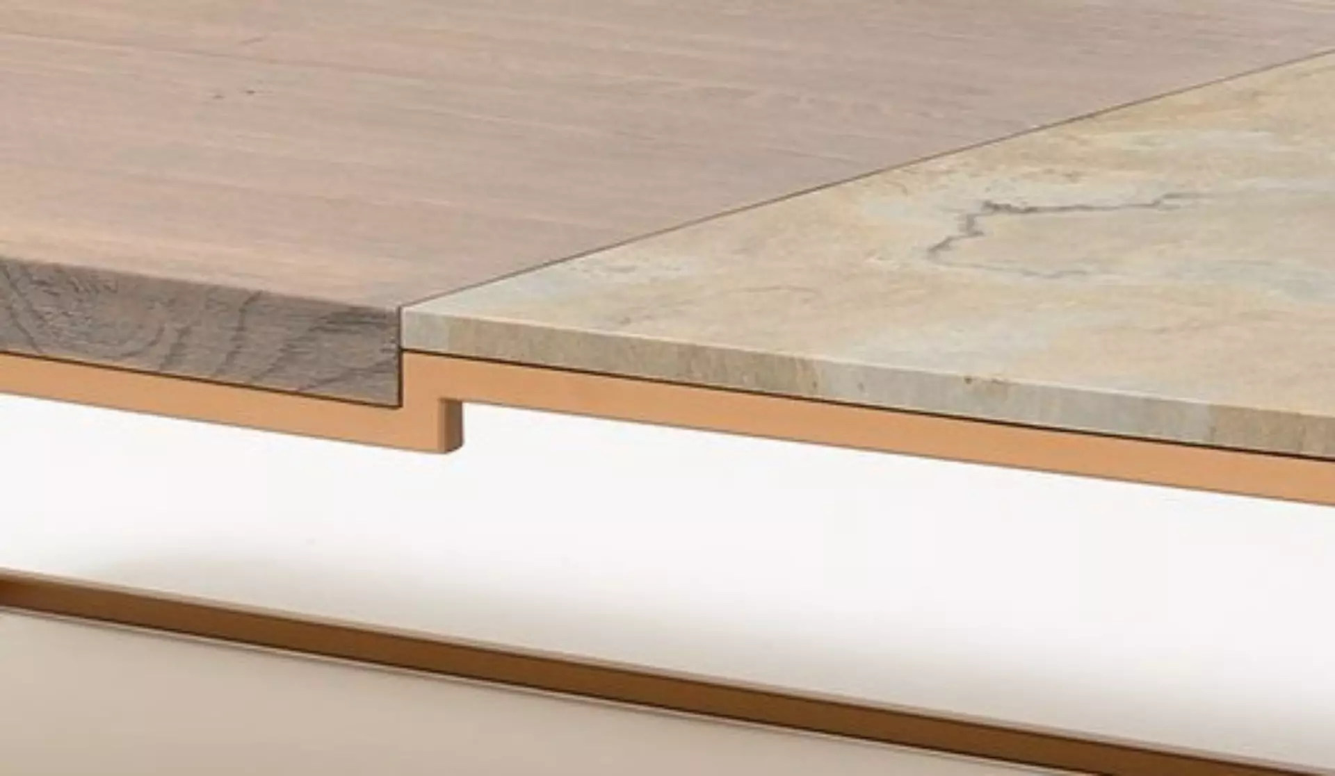 Blat dzielony (divided table top) – konstrukcja blatu pozwala na połączenie różnych materiałów / warstw