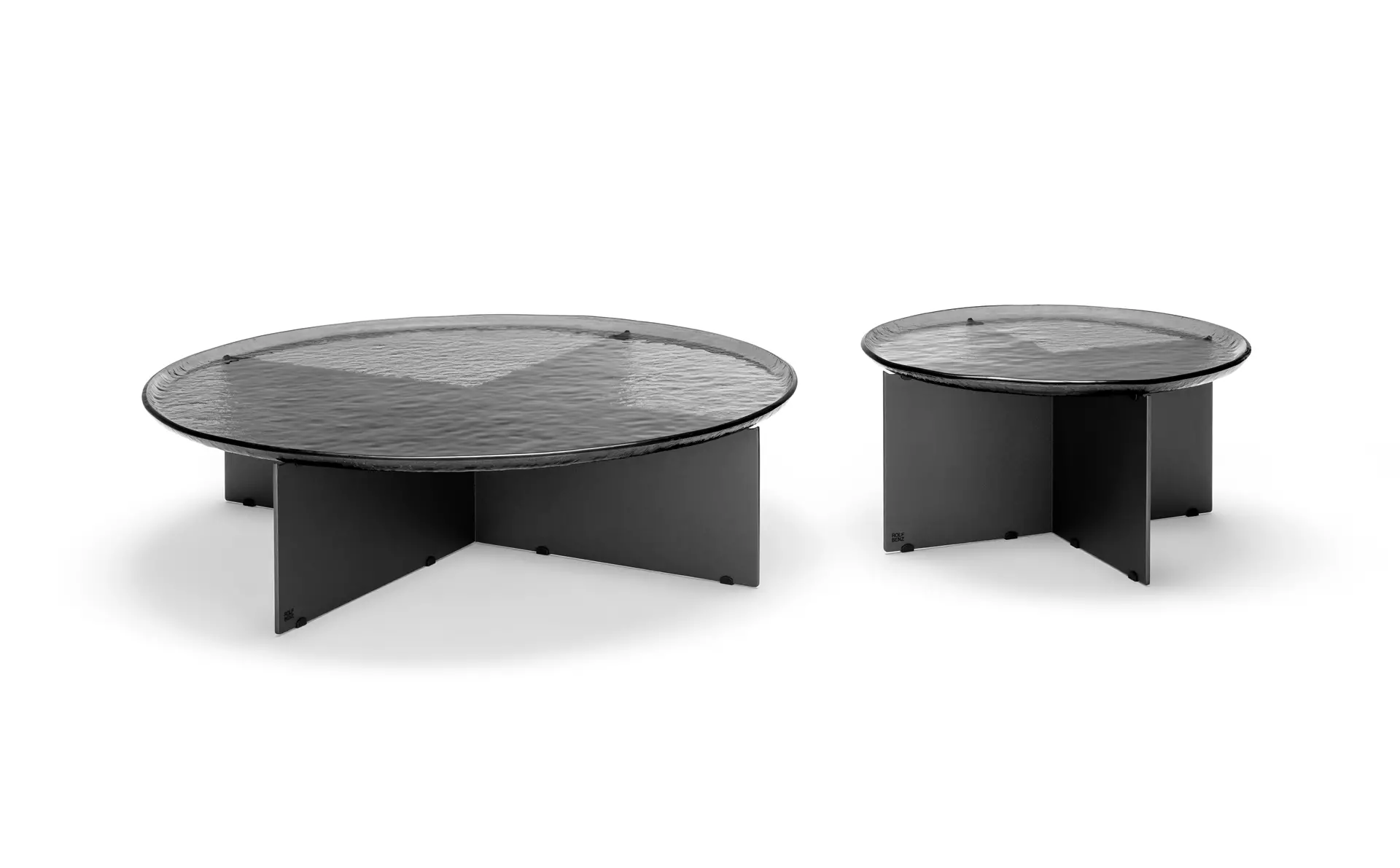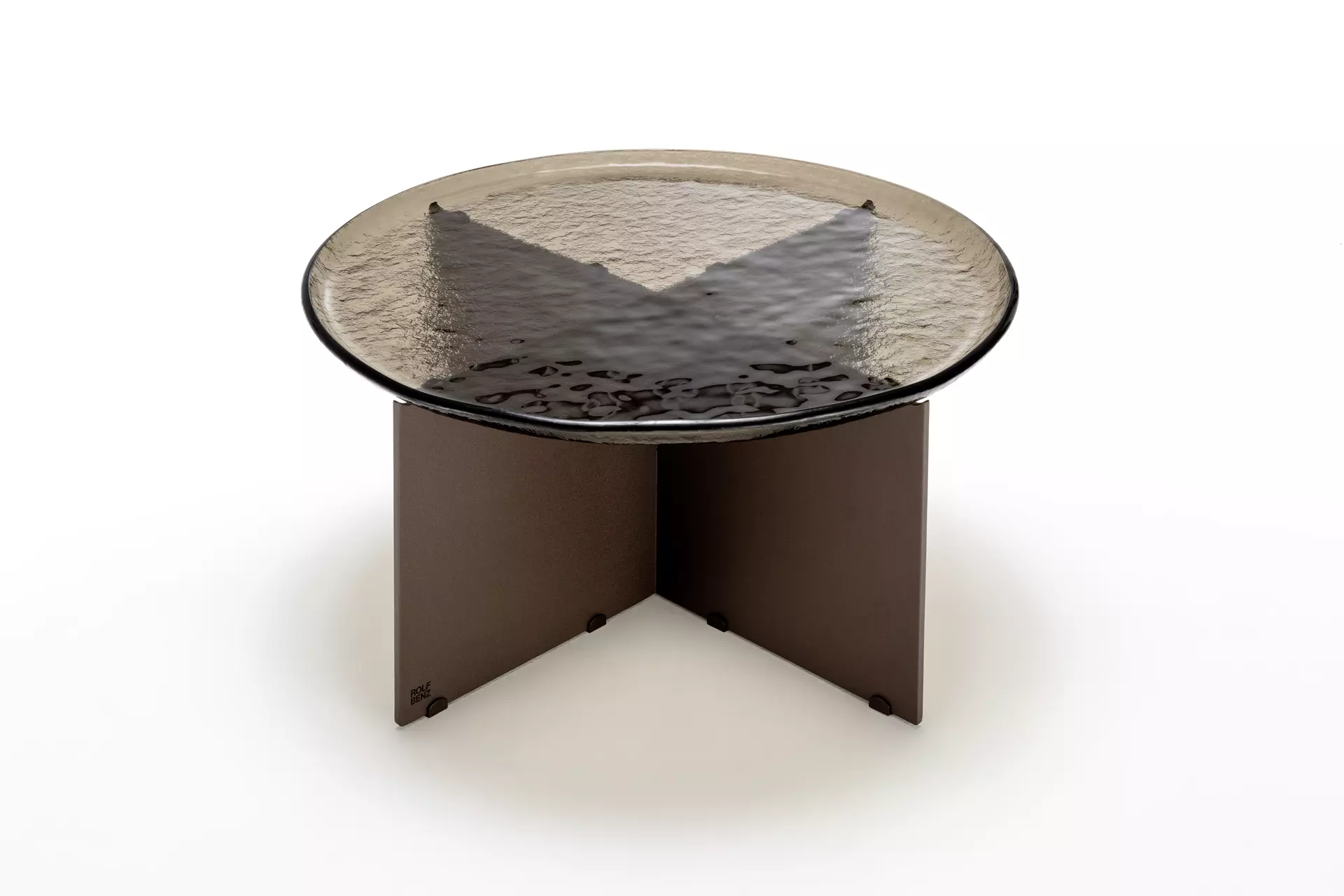 Stolik Rolf Benz KIO to poezja szkła i stali — mebel, który zaprasza do dialogu światła i cienia. Jego blat z topionego szkła (Parsol grey lub bronzowy) ma duszę — każde zamknięte w nim załamanie światła opowiada historię unikalności.