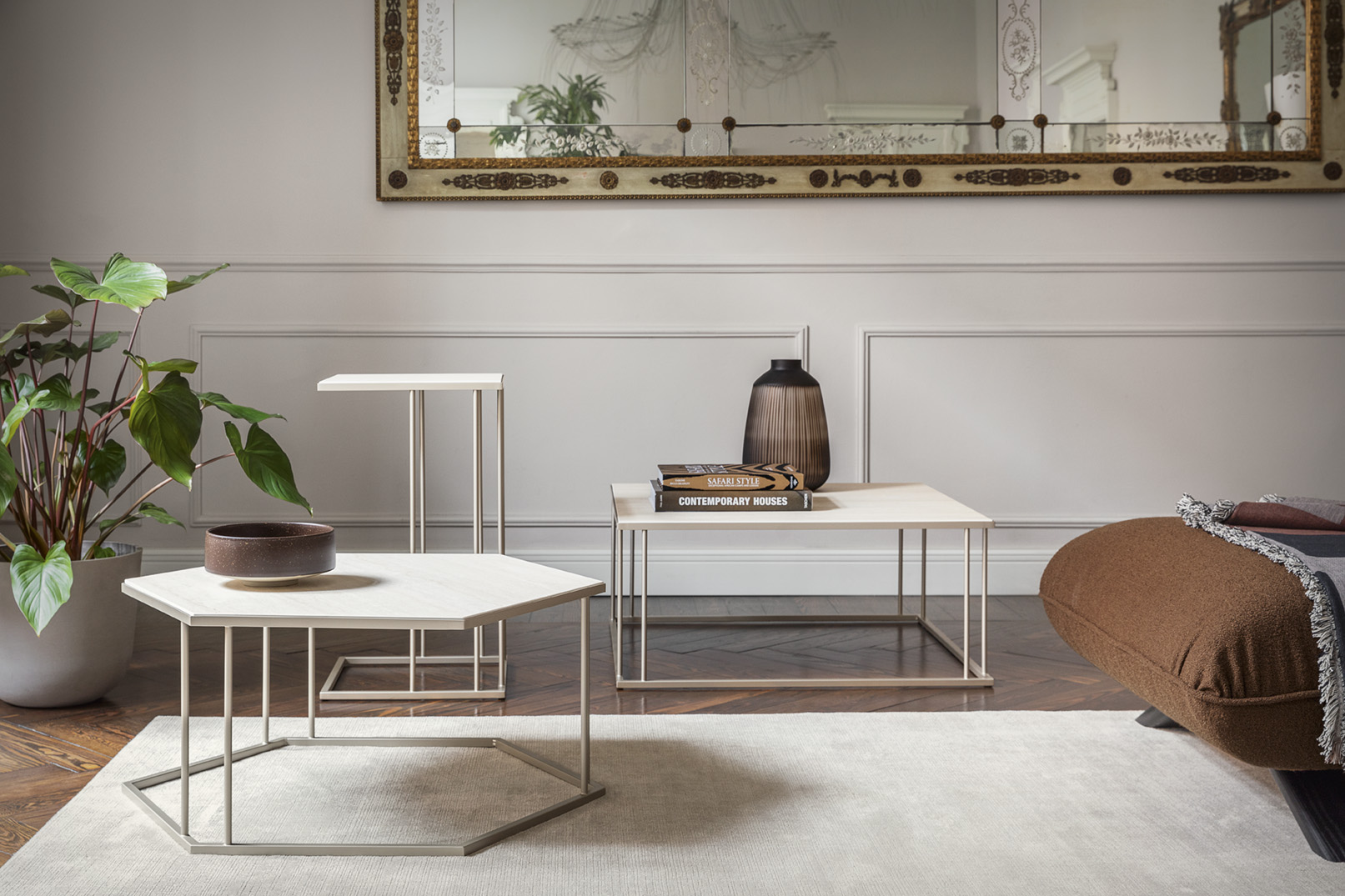 Calligaris Renee to kolekcja nowoczesnych stolików kawowych o minimalistycznej i eleganckiej formie. Meble z tej linii łączą czystą geometrię z wyrafinowaną estetyką, dzięki czemu pasują do różnych stylów wnętrz — od nowoczesnych i skandynawskich po bardziej klasyczne w aranżacji modern.