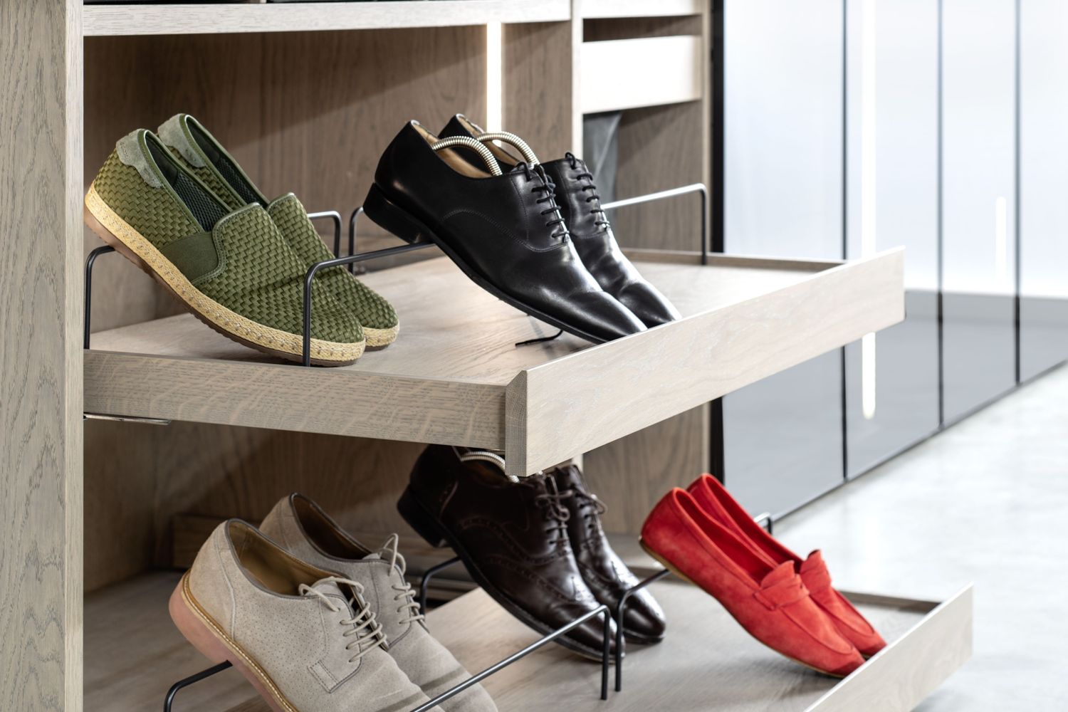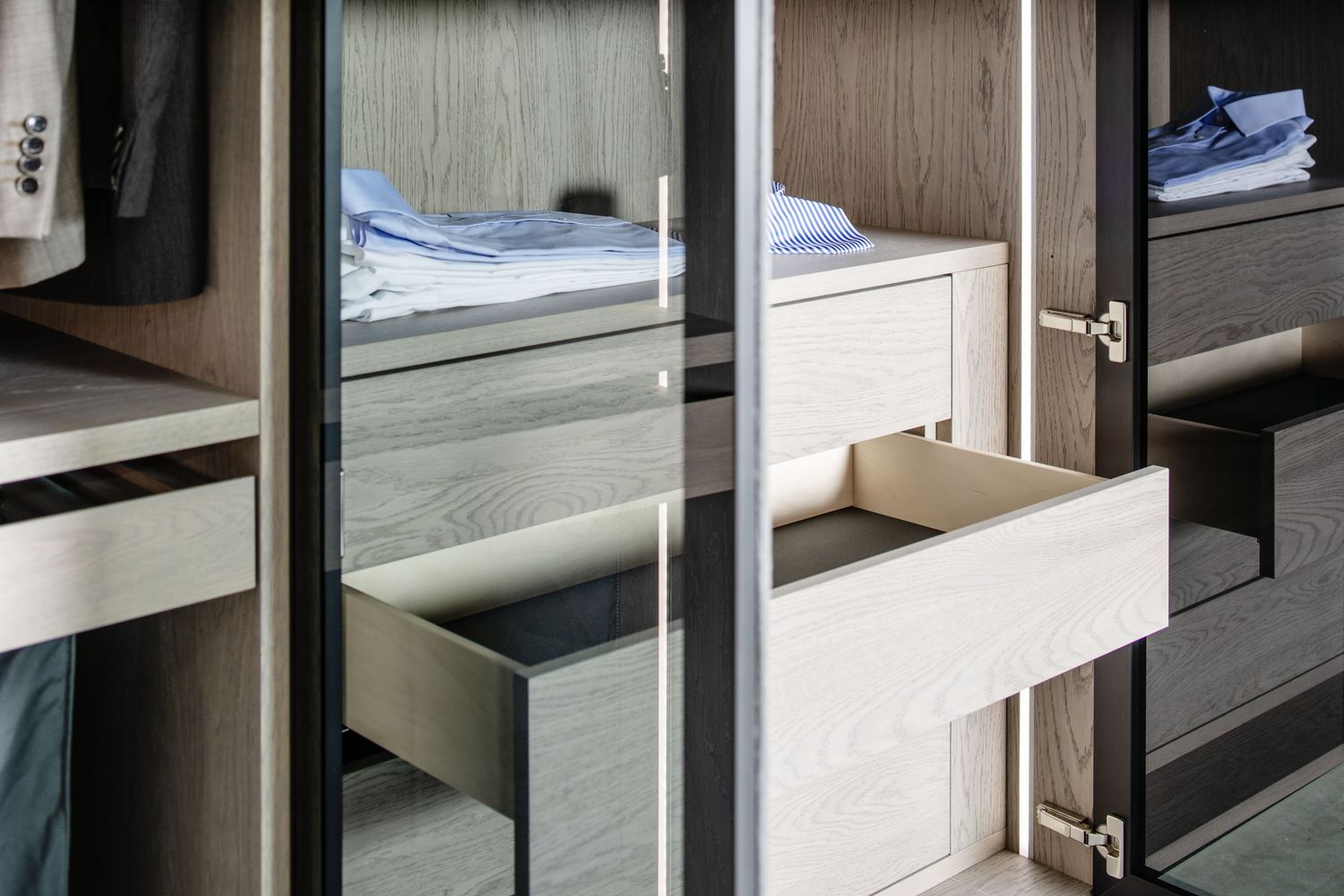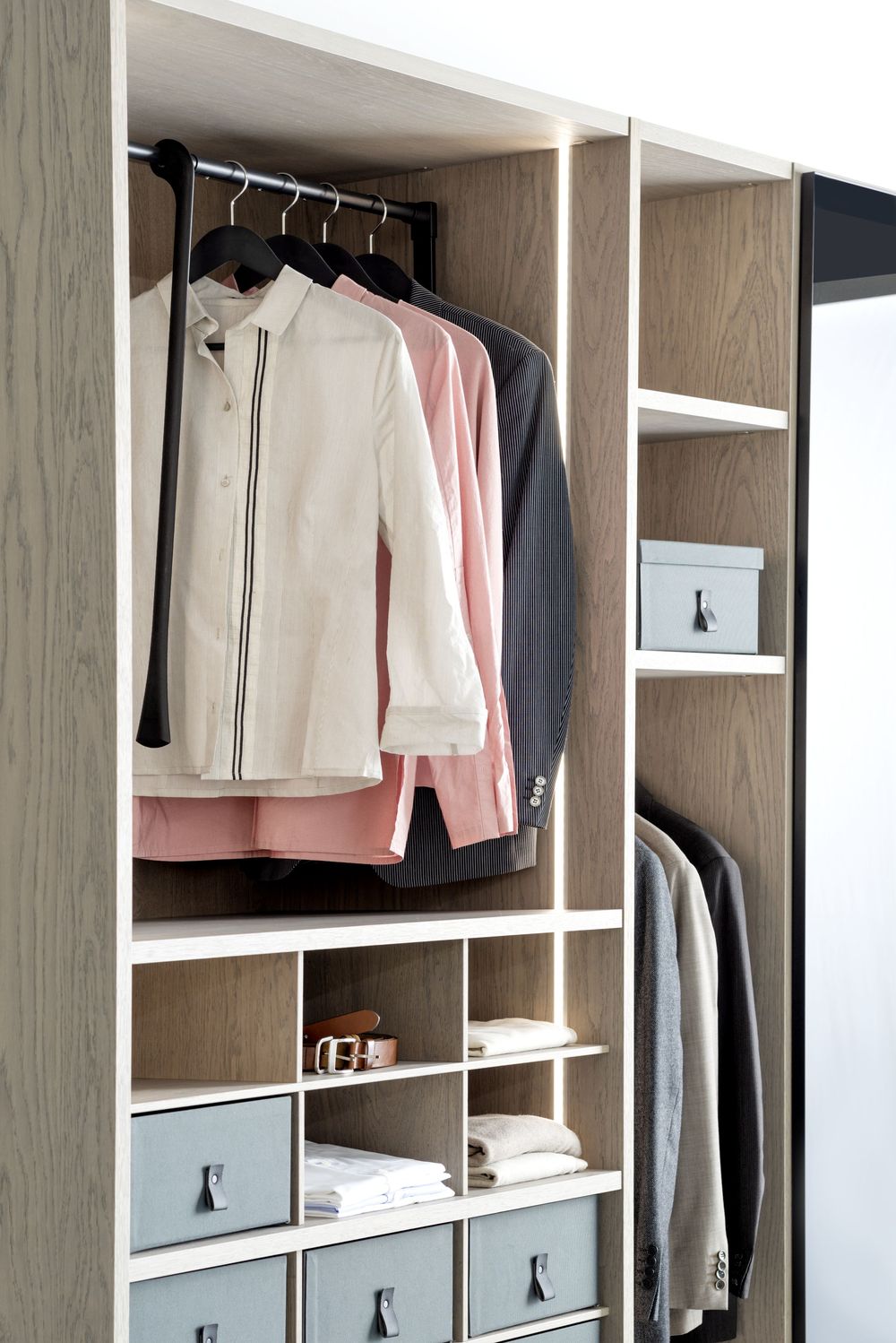 sprawdza się w garderobach typu „walk-in”.
