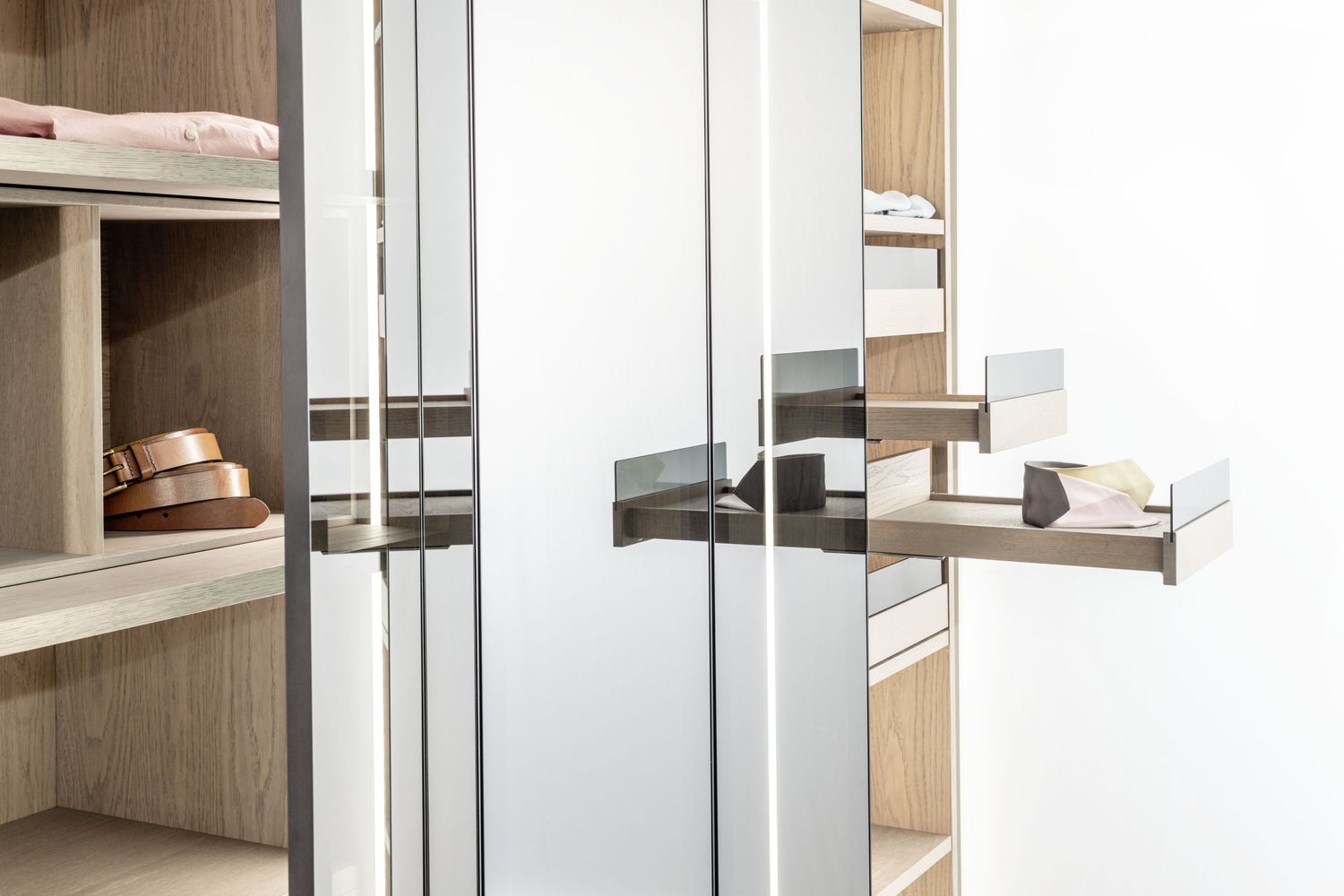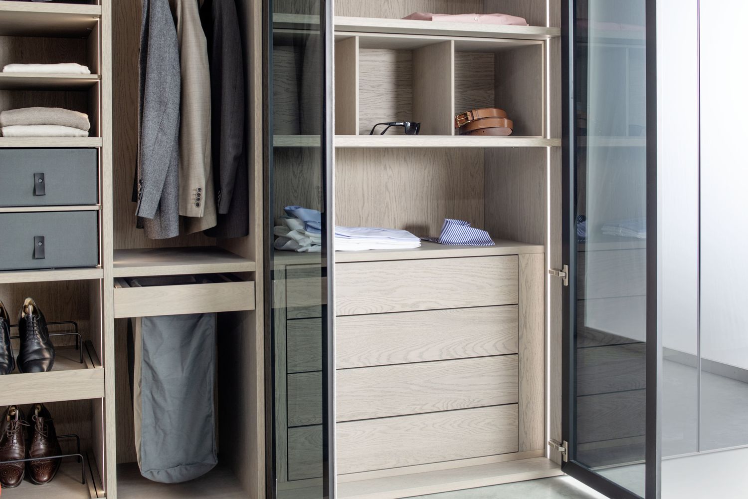 FOCUS 41 to system garderobiano-szafowy marki Sudbrock, projektowany jako zabudowa na wymiar, a nie gotowa szafa modułowa.