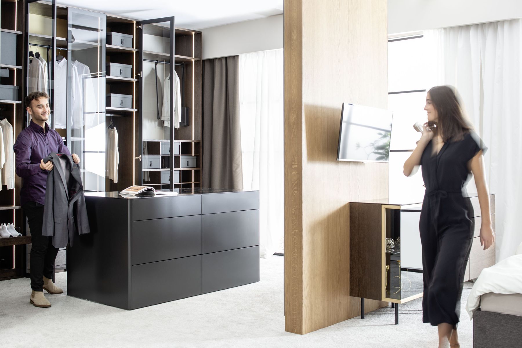 FOCUS 48 to element kolekcji garderób Sudbrock, zaprojektowany jako modułowy system do tworzenia zabudów typu walk-in.