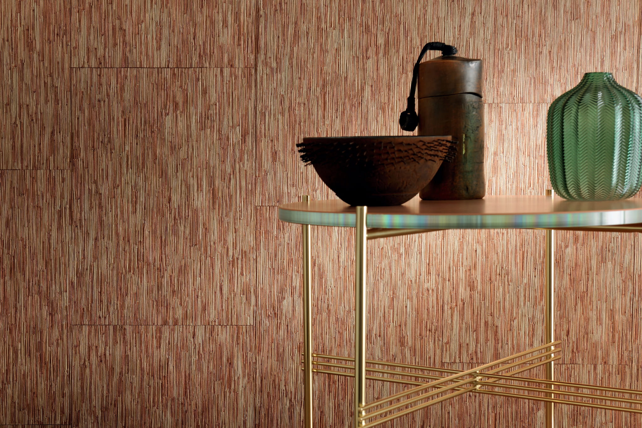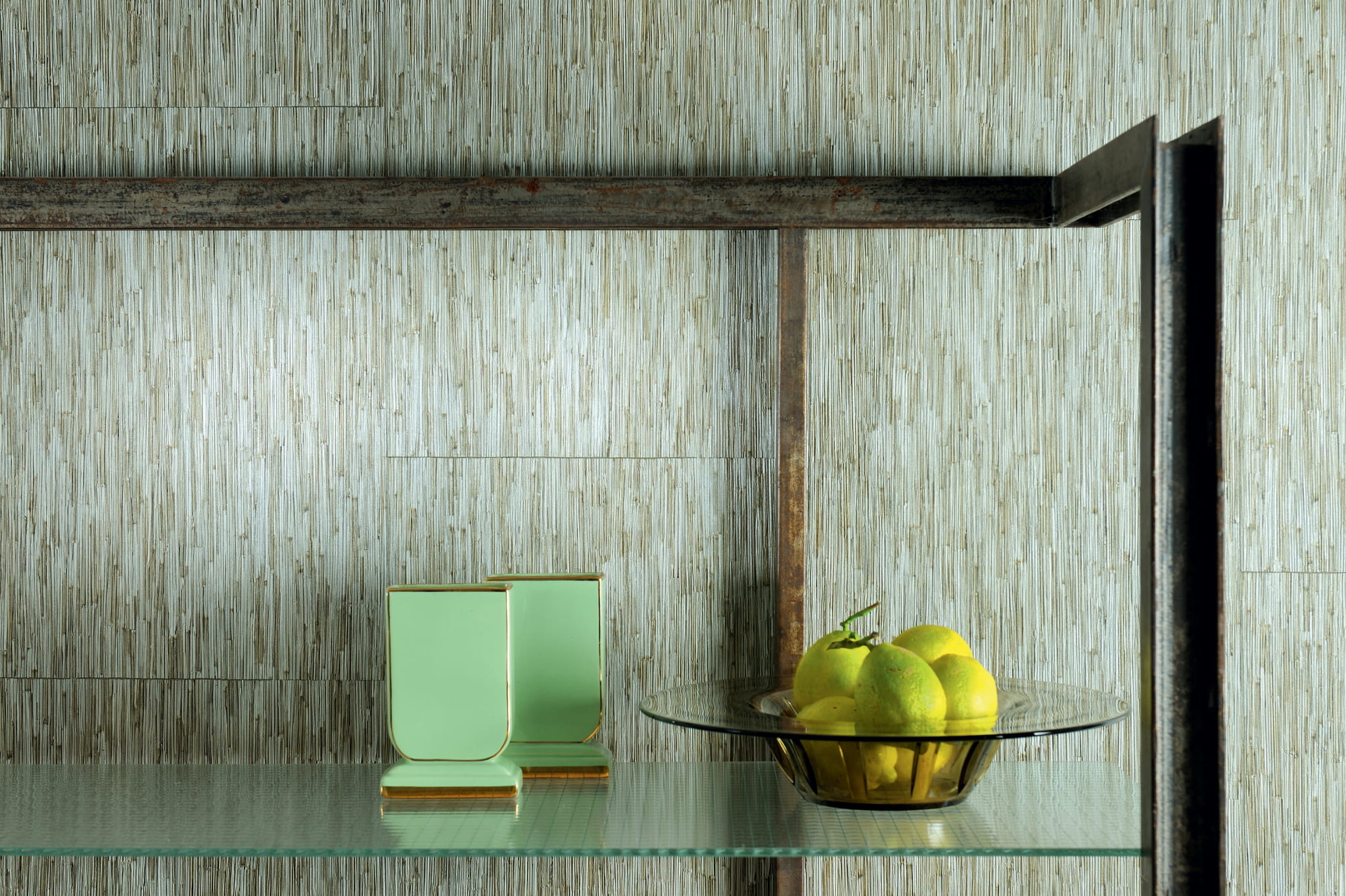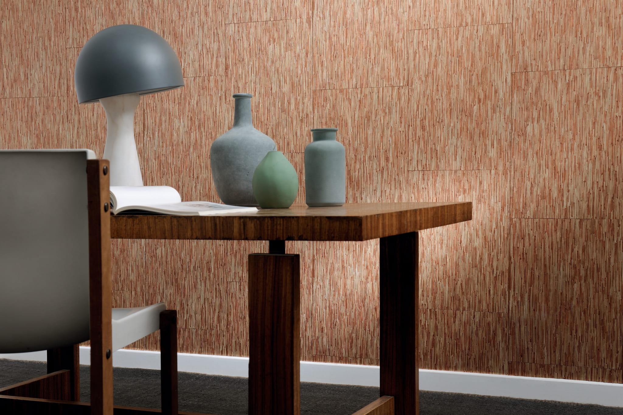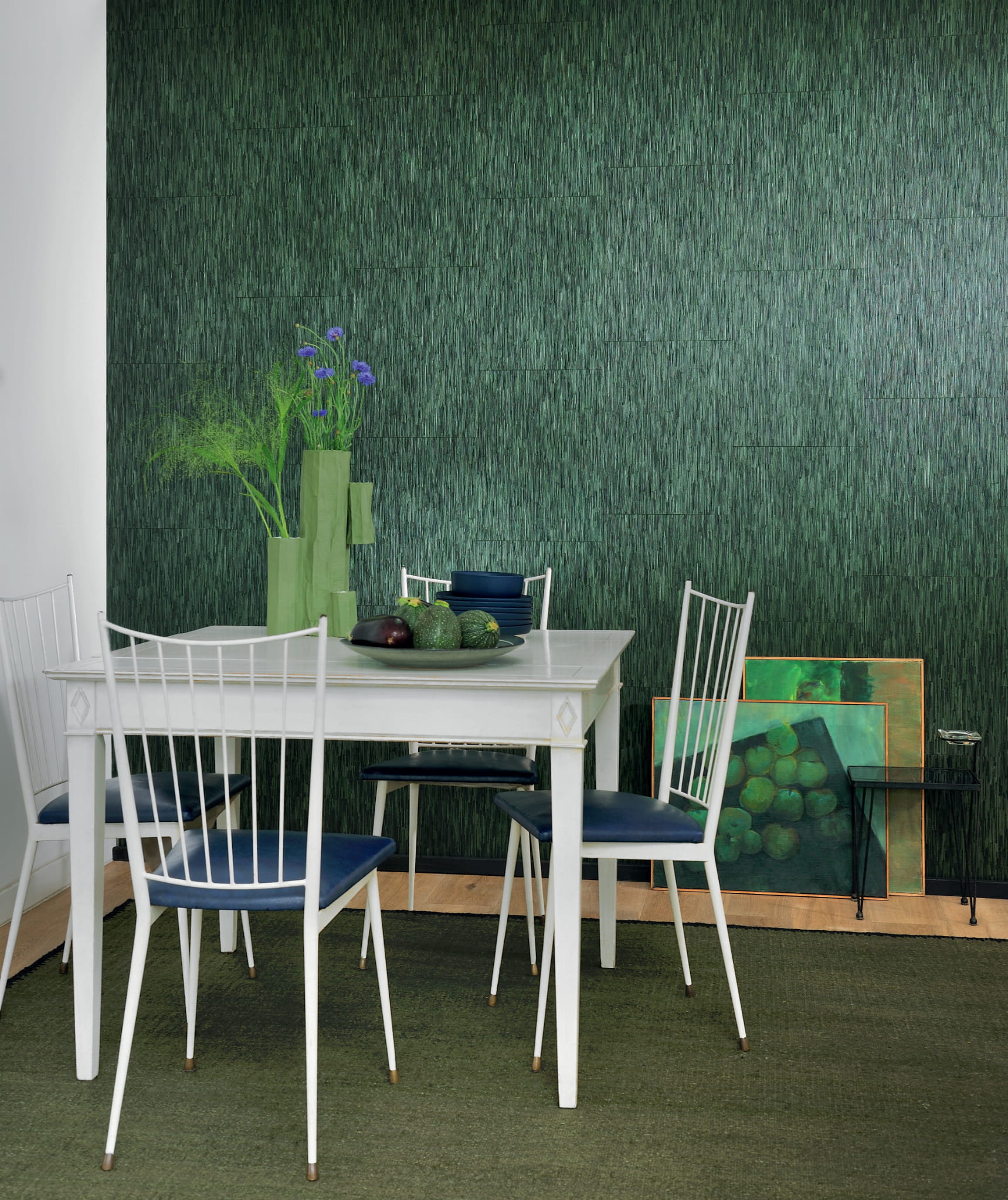 Faktura wręcz wyrafinowana, dwukolorowa słomka o bardzo naturalnym efekcie. Tapeta występuje również w wersji z zatopionymi drobinkami metali, co działa magicznie z grą światła, tworząc efekt wypukły, połyskujący wręcz opalizujący.