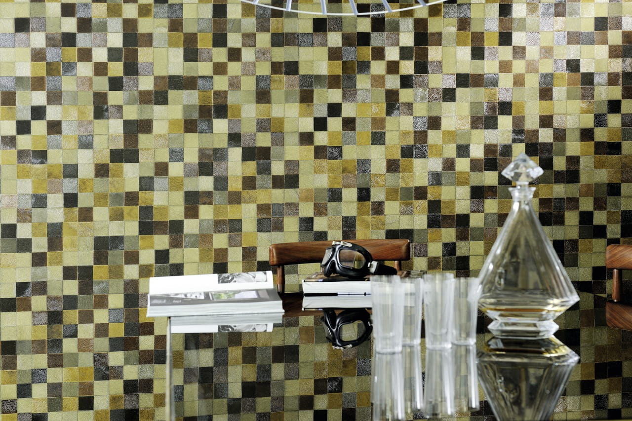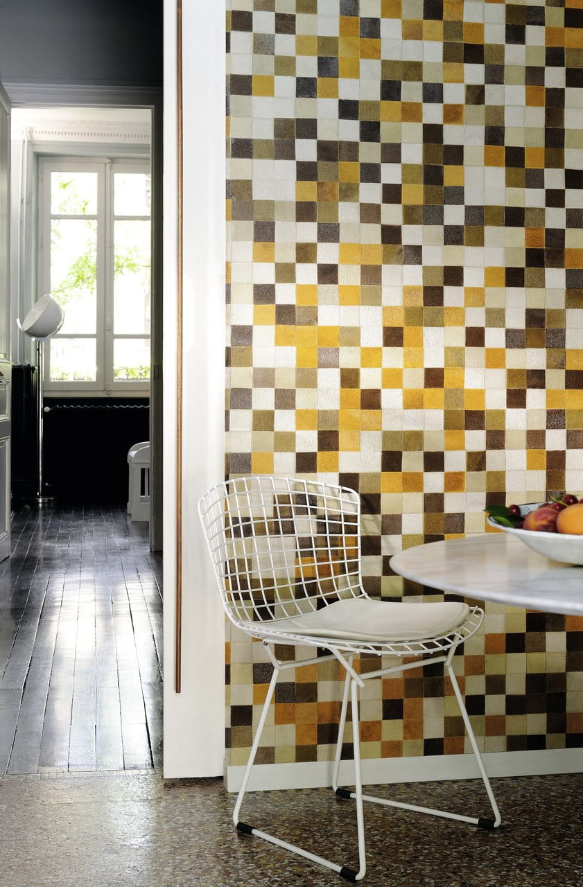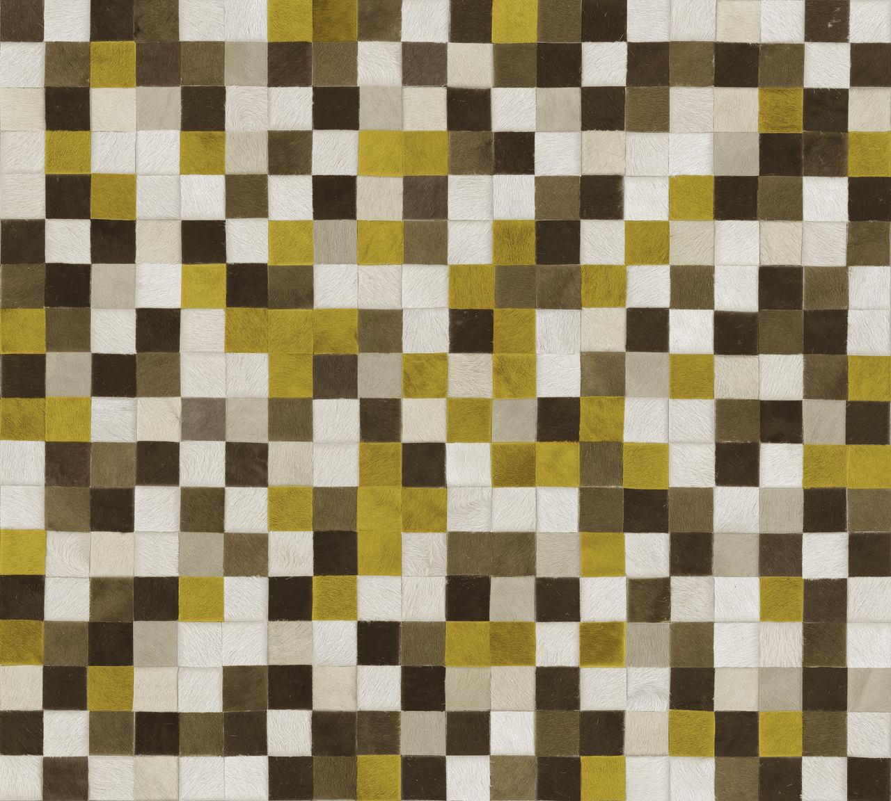 Zdumiewająca struktura zwierzęcej sierści, wykonanej tak precyzyjnie, że trzeba jej dotknąć! Sierść ułożona jest tym razem w małych kwadracikach o różnokolorowych odcieniach, "czesanych" w różnych kierunkach, co powoduje, iż tapeta cudownie mieni się na ścianie w zależności od padającego światła czy punktu obserwacji. Kiedy nie spojrzysz, zawsze wygląda inaczej!