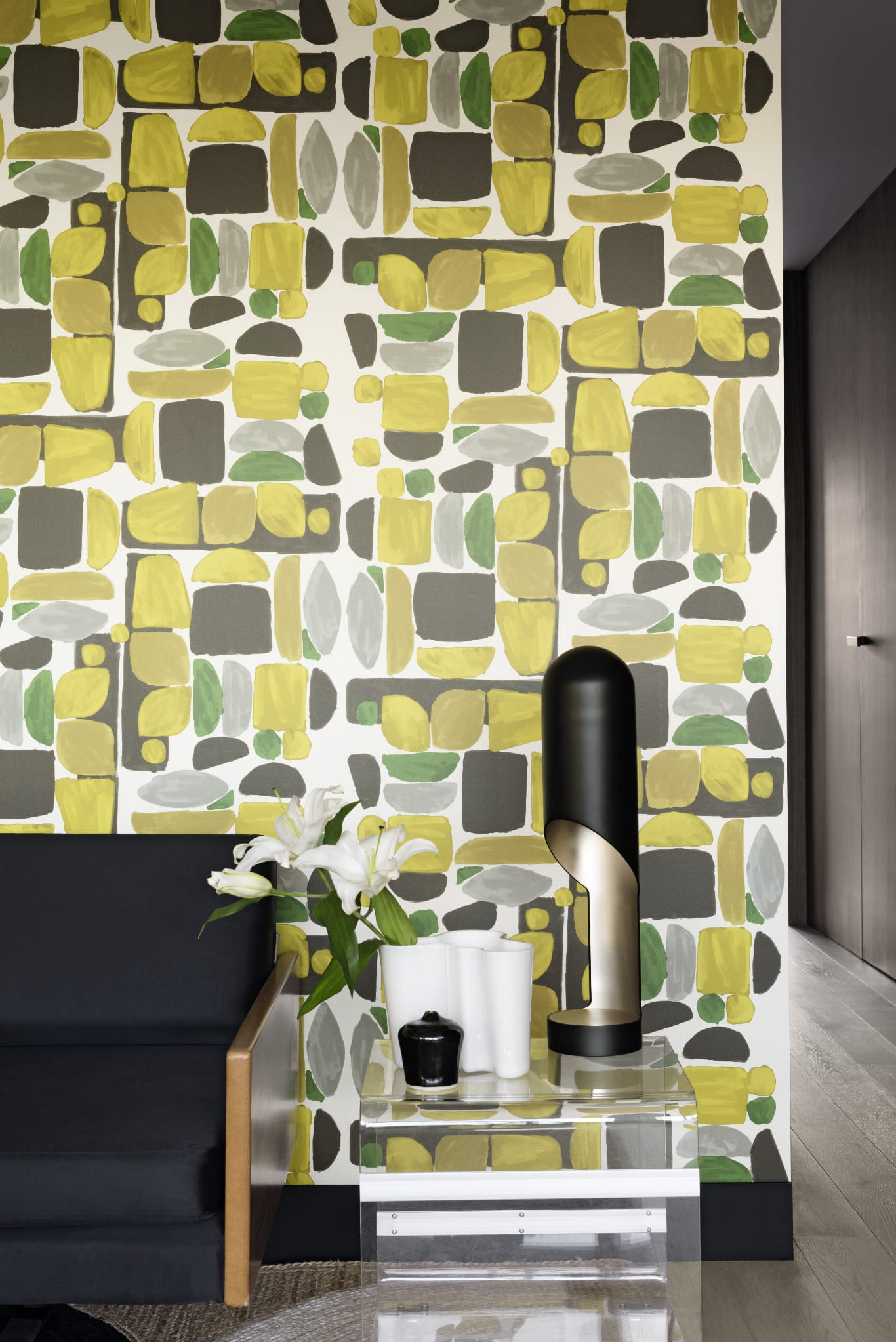Tapeta flizelinowa z geometrycznym wzorem.