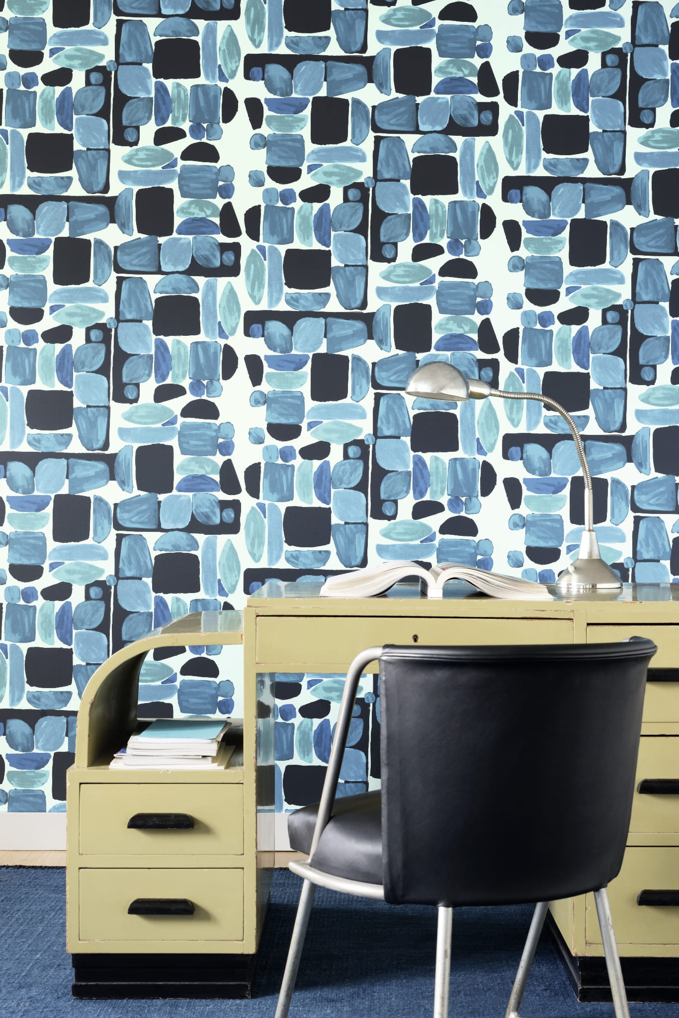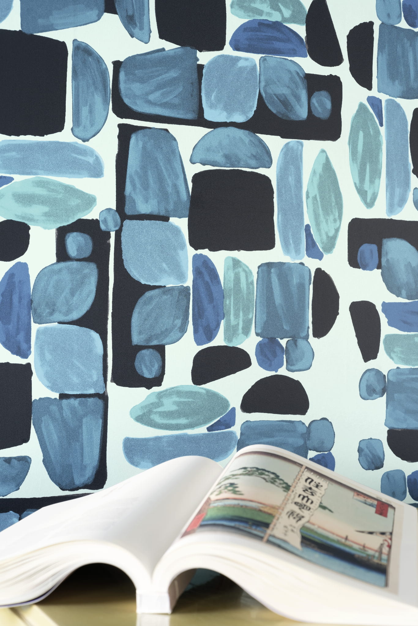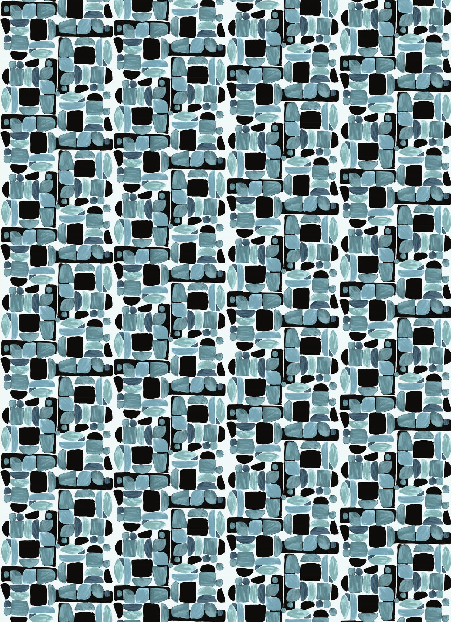 Wzór dość figlarny, zbiór form kamyków, rzekomo poukładanych, na dużej przestrzeni działa bardzo energetycznie. Pokazana w kontrastowych, mocnych i żywych kolorach pobudza naszą wyobraźnię.