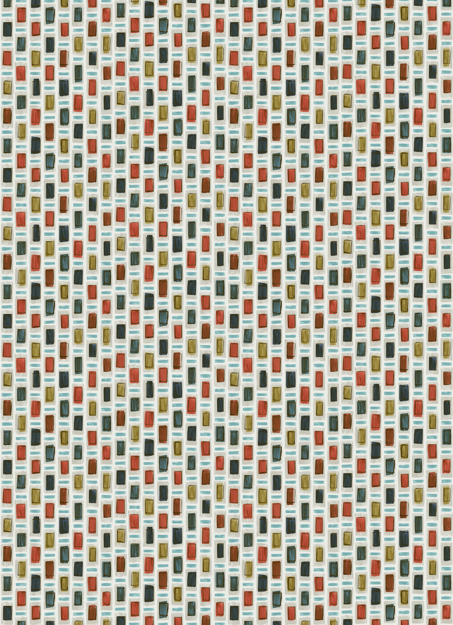 Wzór dość figlarny - szalone prostokąty, całościowo tworzy spójną grafikę, która w jakiś sposób uspokaja wnętrze i działa kojąco. Pokazana w kontrastowych, mocnych i żywych kolorach pobudza naszą wyobraźnię.