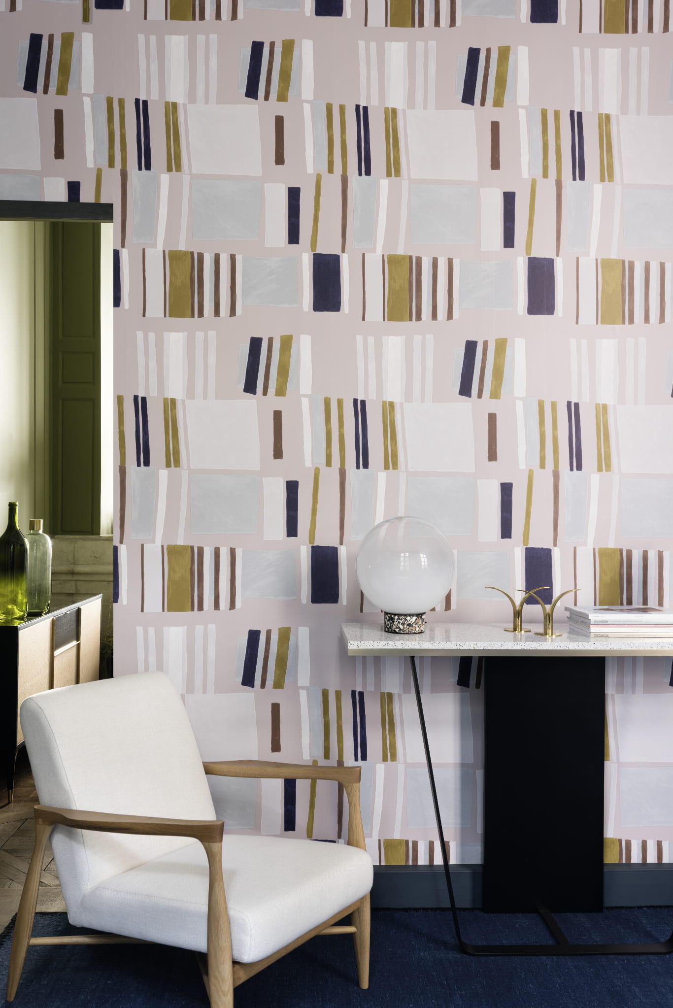 Tapeta flizelinowa z geometrycznym wzorem.