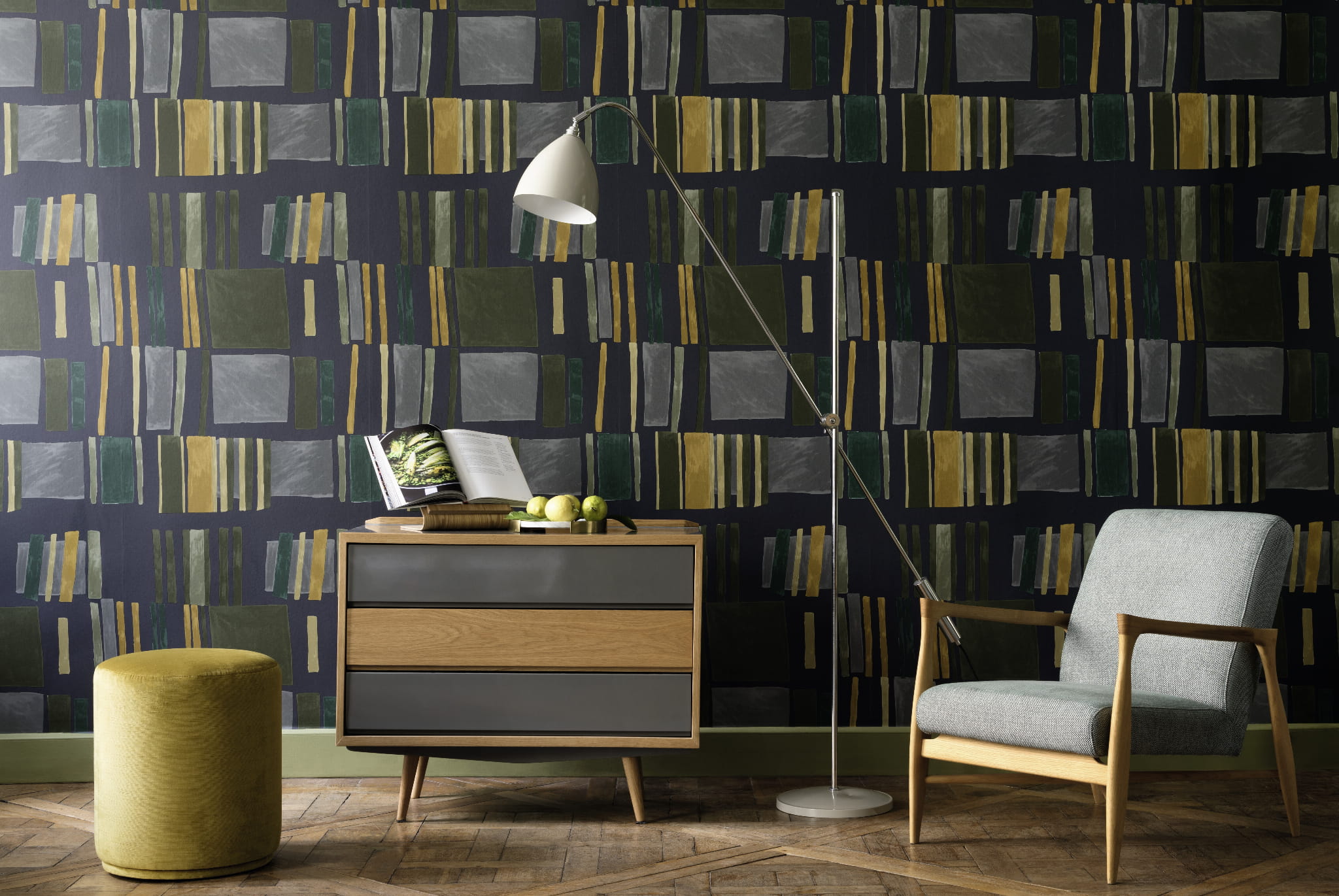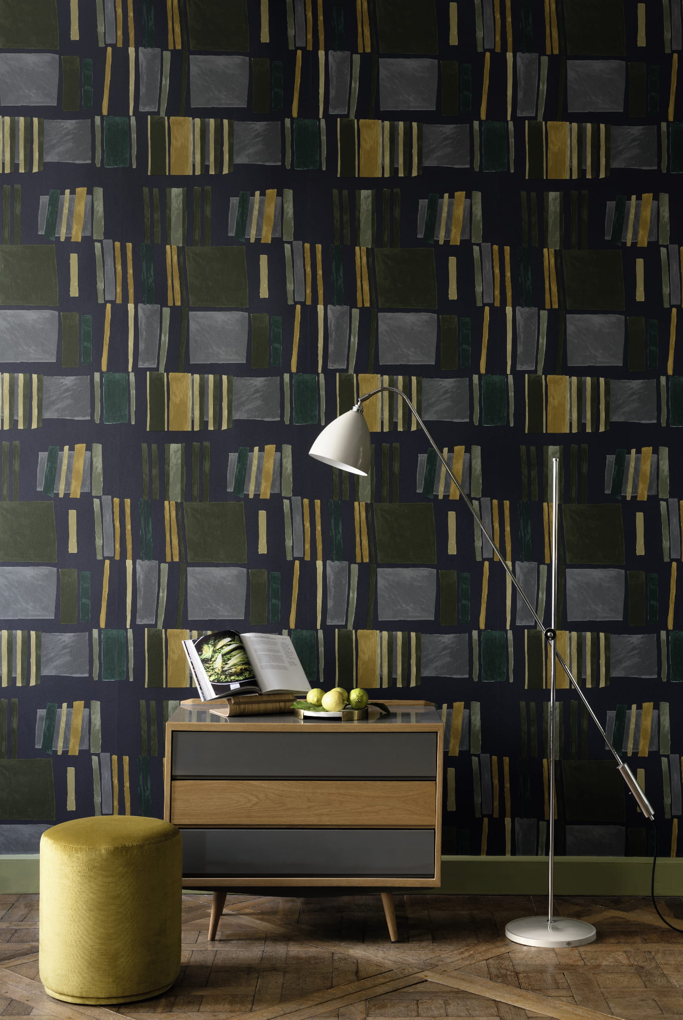 Tapeta flizelinowa z geometrycznym wzorem.