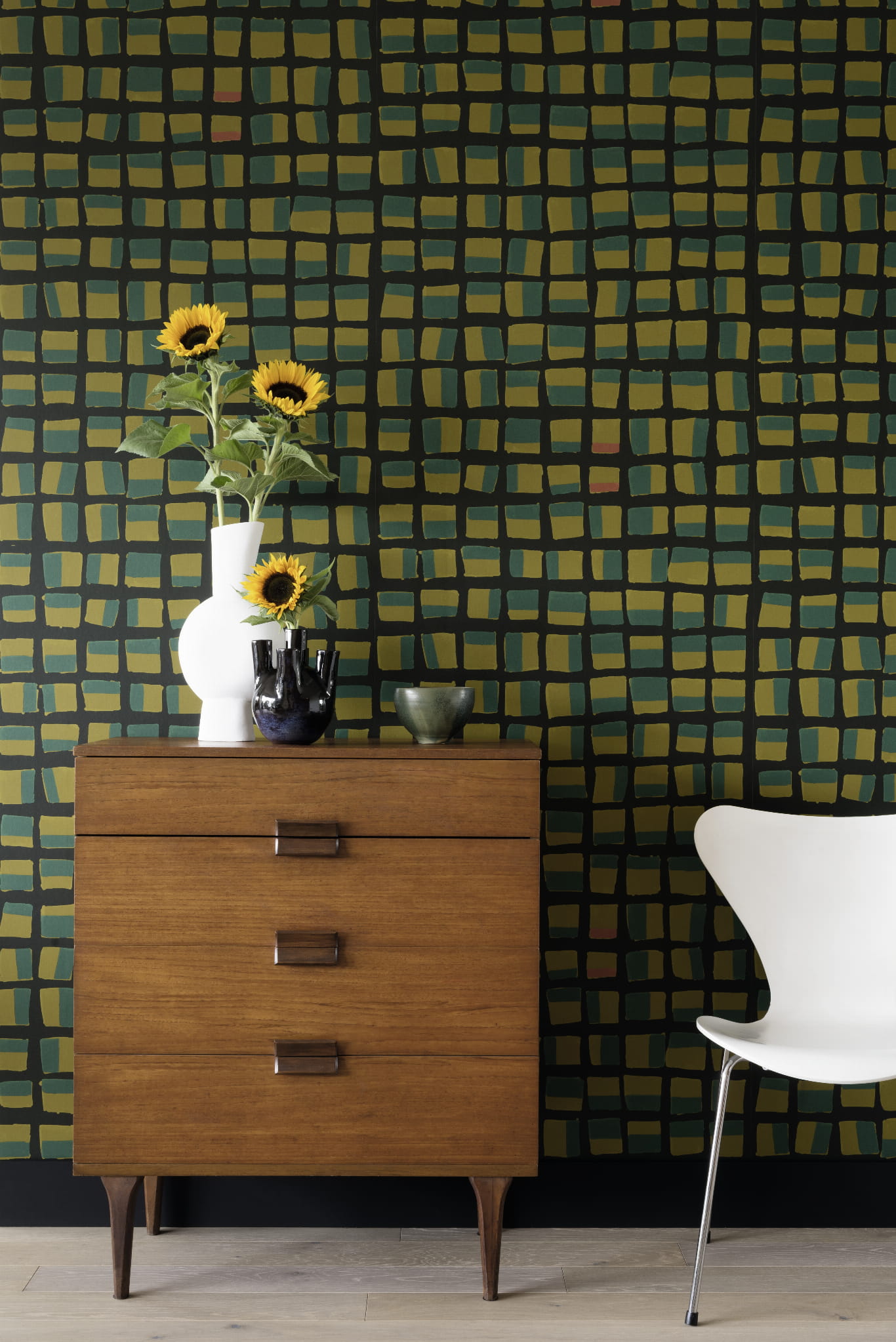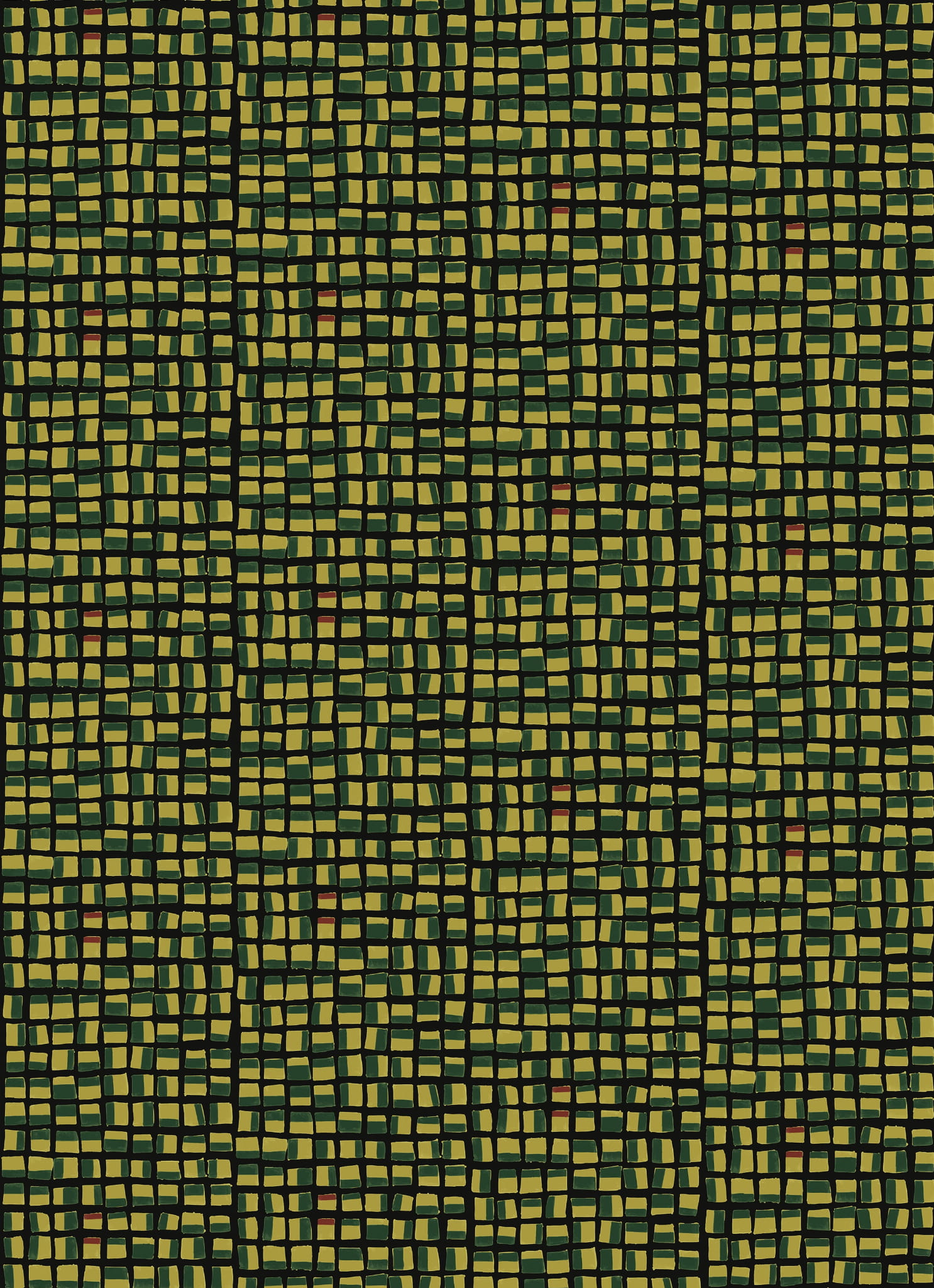 Wzór dość figlarny, szalone kwadraciki, całościowo tworzy spójną grafikę, która w jakiś sposób uspokaja wnętrze i działa kojąco. Pokazana w kontrastowych, mocnych i żywych kolorach pobudza naszą wyobraźnię.
