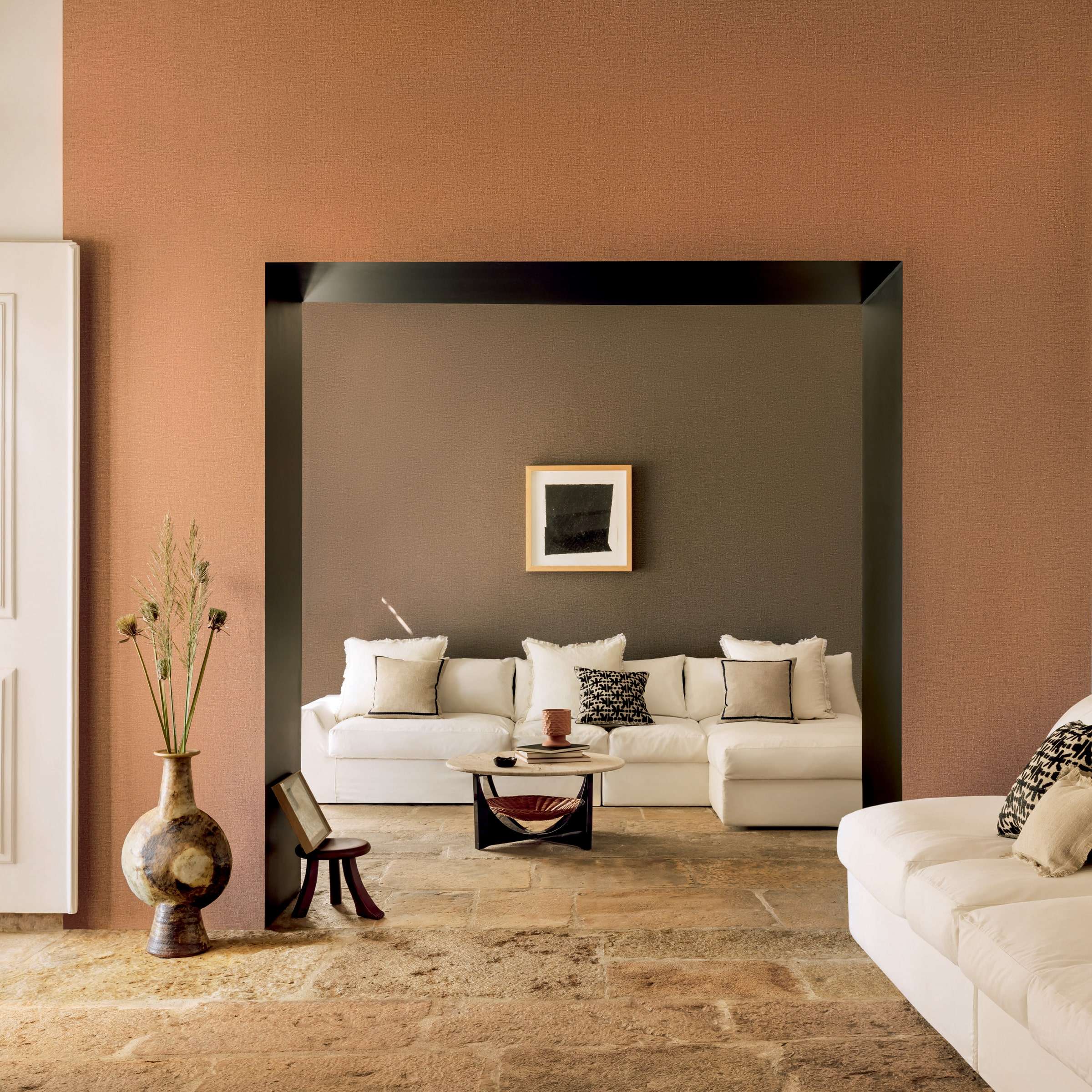 Kolor i faktura tworzą niezwykle przyjemne, nastrojowe tło — pełne naturalnego ciepła, idealne do wnętrz, w których liczy się komfort, harmonia i autentyczność materiałów.