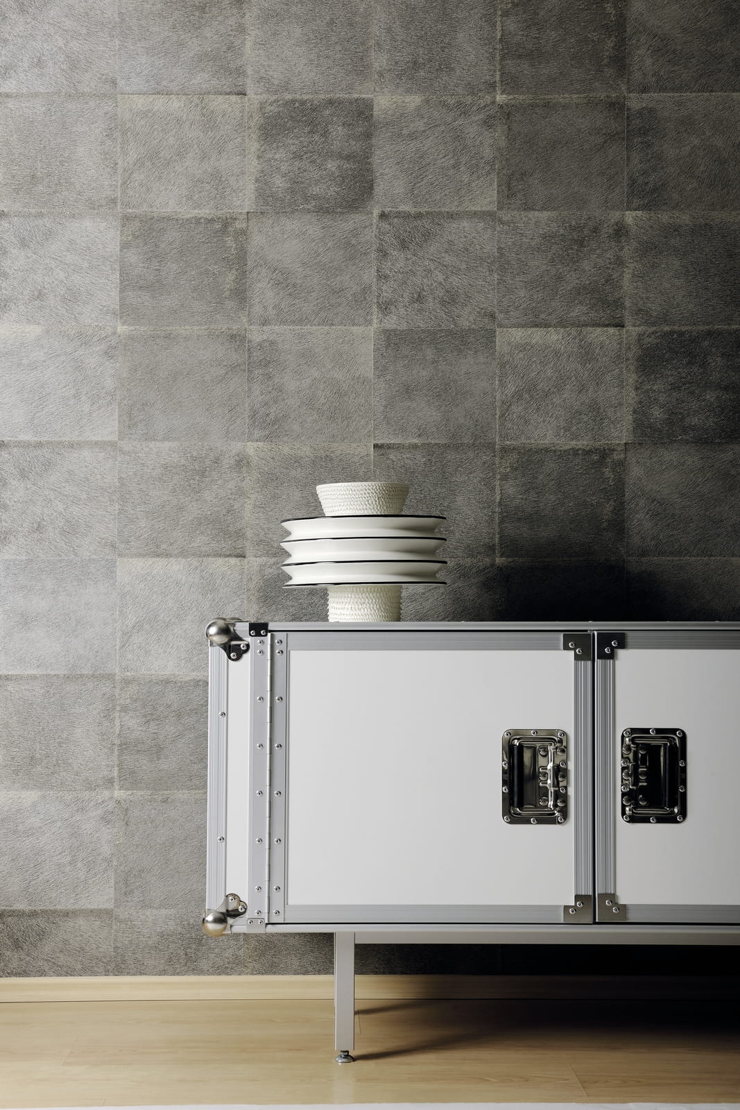 Zdumiewająca struktura zwierzęcej sierści, wykonanej tak precyzyjnie, że trzeba jej dotknąć! Sierść ułożona jest w kwadratach "czesanych" w różnych kierunkach, co powoduje, iż tapeta cudownie mieni się na ścianie w zależności od padającego światła czy punktu obserwacji. Kiedy nie spojrzysz, zawsze wygląda inaczej!