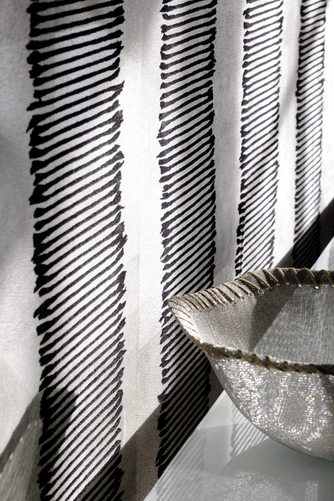 Tapeta winylowa o strukturze sierści ułożonej w mieniącą się przy różnym oświetleniu szachownicę. Dodatkowym atrybutem jest aksamitna warstwa flock w charakterystycznym wzorze.