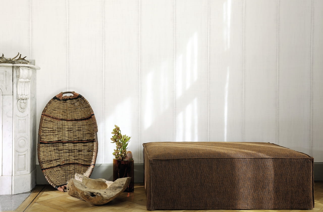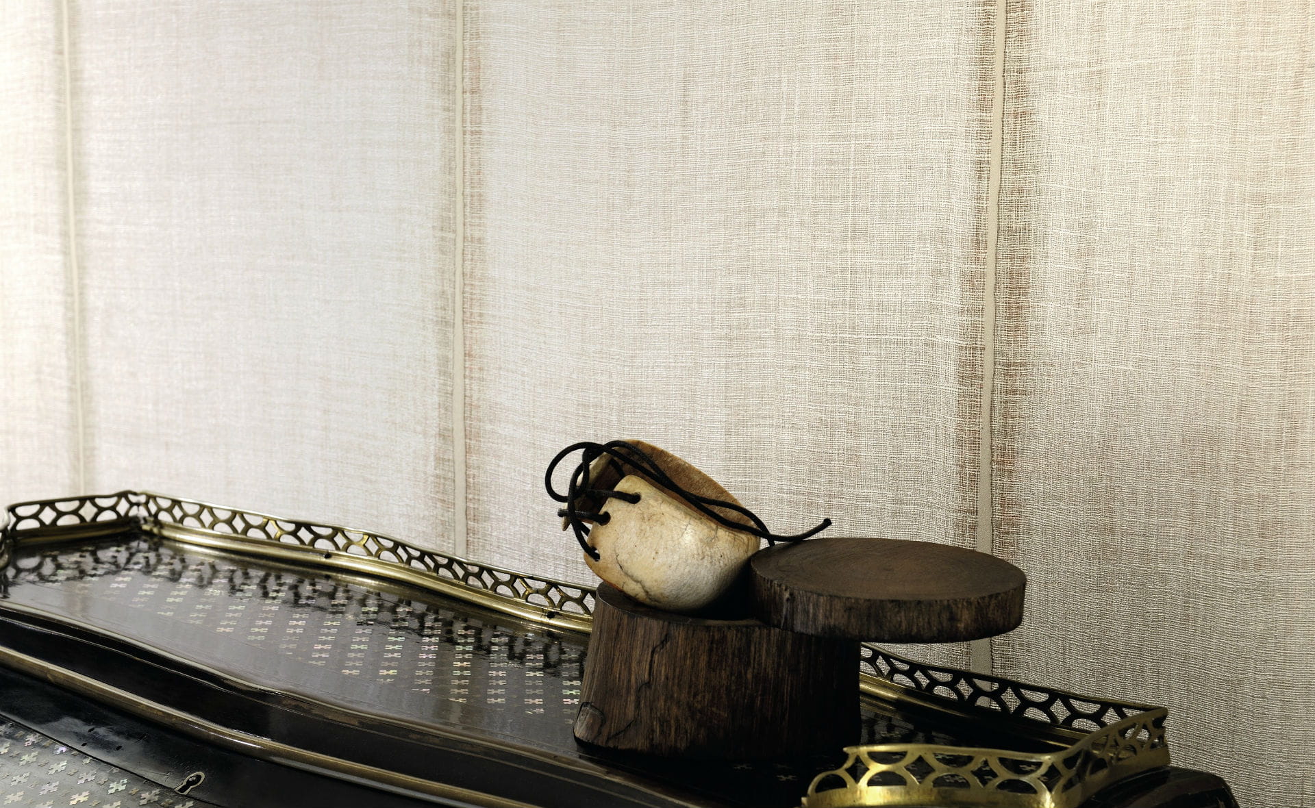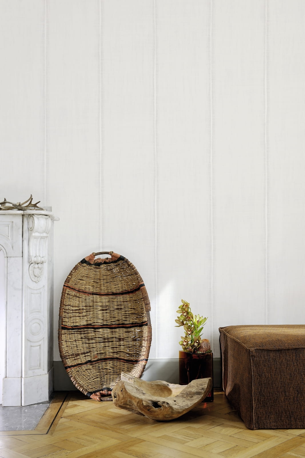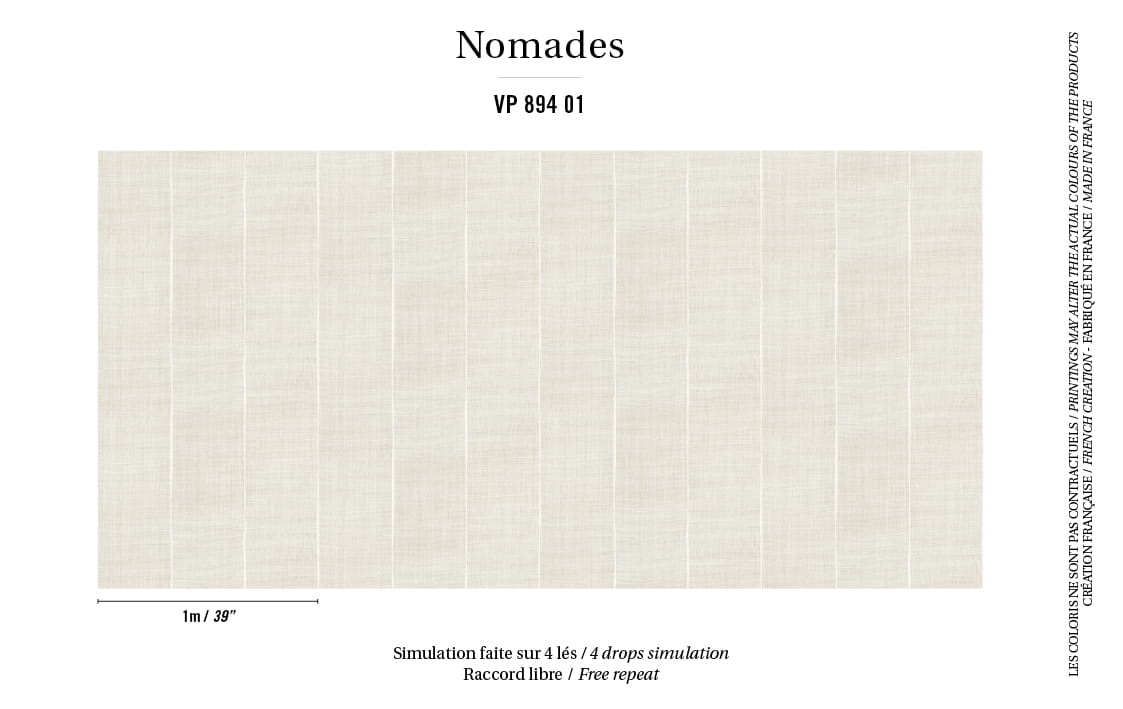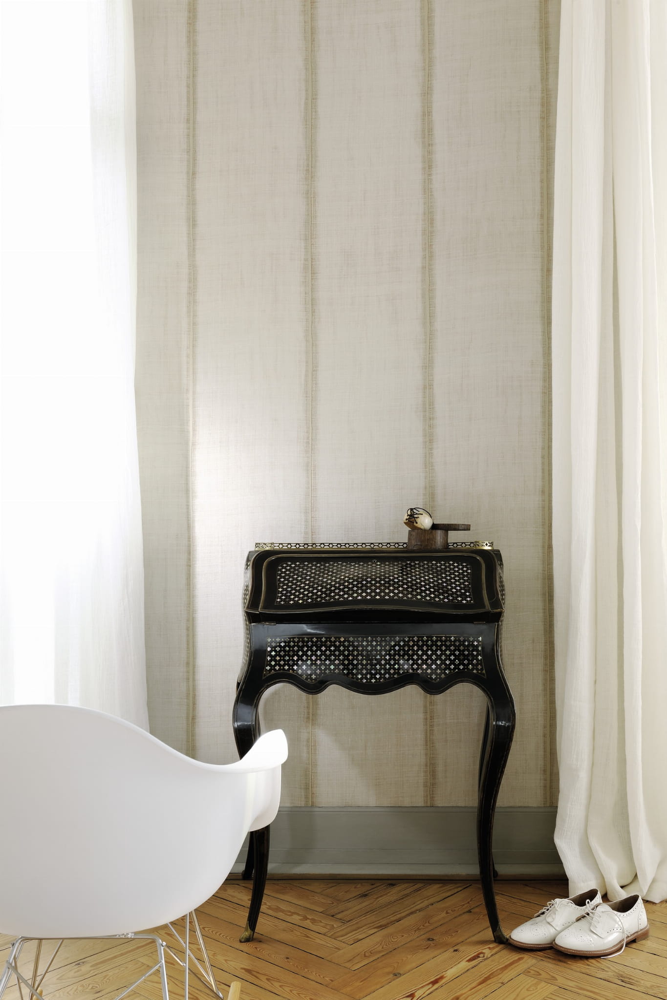 Absolutnie realistyczna struktura płótna układanego w nieco nieperfekcyjne pasy, co dodatkowo podkreśla jej naturalność wizualną. Pasy są oddzielone precyzyjnie przemyślanym i dobranych dla każdego wariantu tapety niuansem kolorystycznym, odczuwalnym również w samej strukturze tapety Jak w każdej tapecie Elitis, tak i tutaj w kolekcji Nomades, perfekcja wykonania i zjawiskowa kolorystyka zdumiewają i inspirują.
