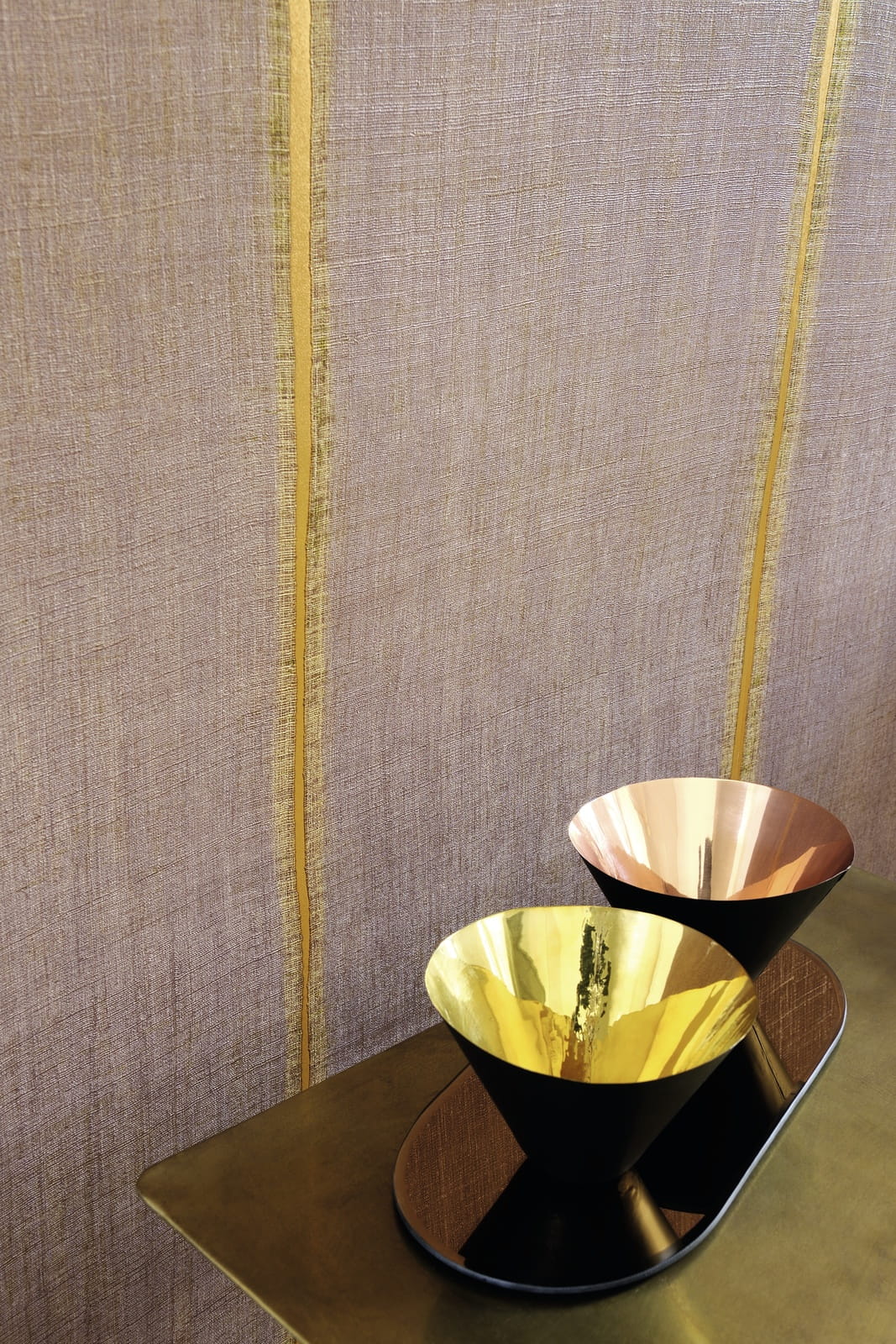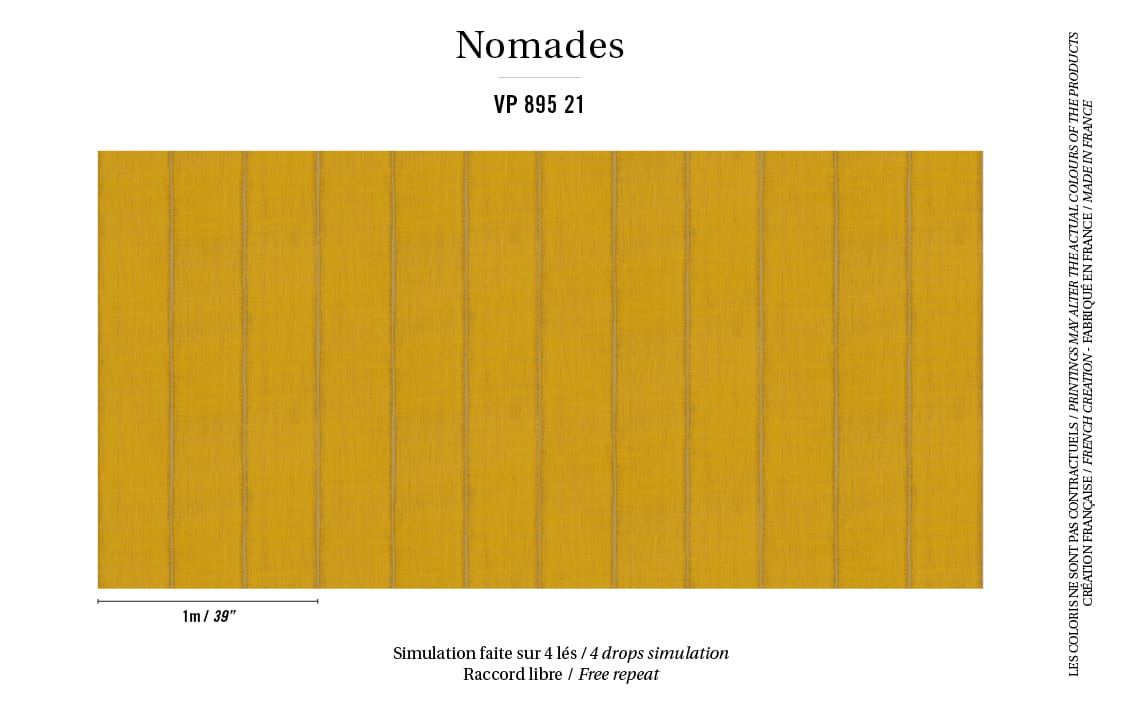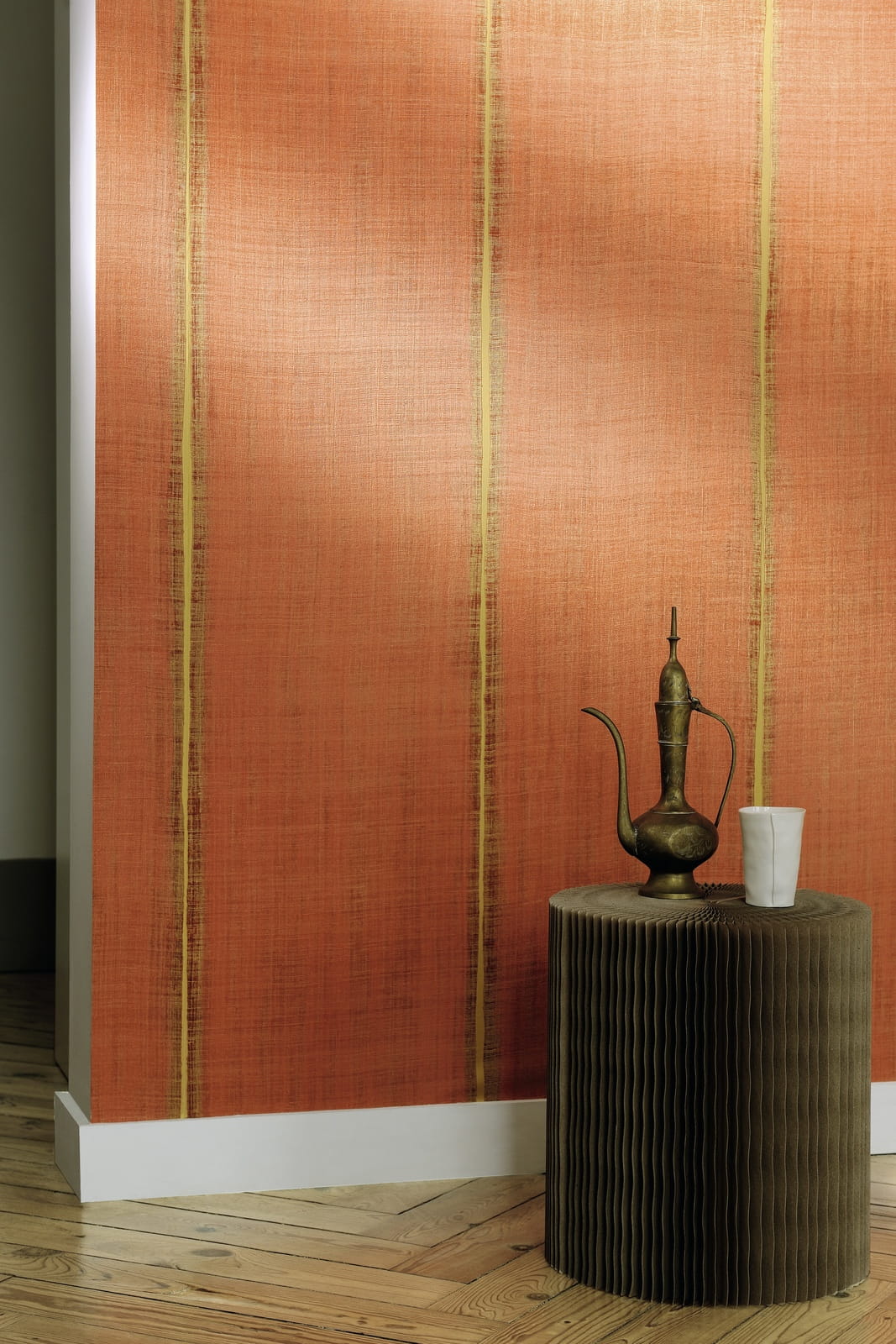 Absolutnie realistyczna struktura płótna układanego w nieco nieperfekcyjne pasy, co dodatkowo podkreśla jej naturalność wizualną. Pasy są oddzielone precyzyjnie przemyślanym i dobranych dla każdego wariantu tapety niuansem kolorystycznym, odczuwalnym również w samej strukturze tapety Jak w każdej tapecie Elitis, tak i tutaj w kolekcji Nomades, perfekcja wykonania i zjawiskowa kolorystyka zdumiewają i inspirują.