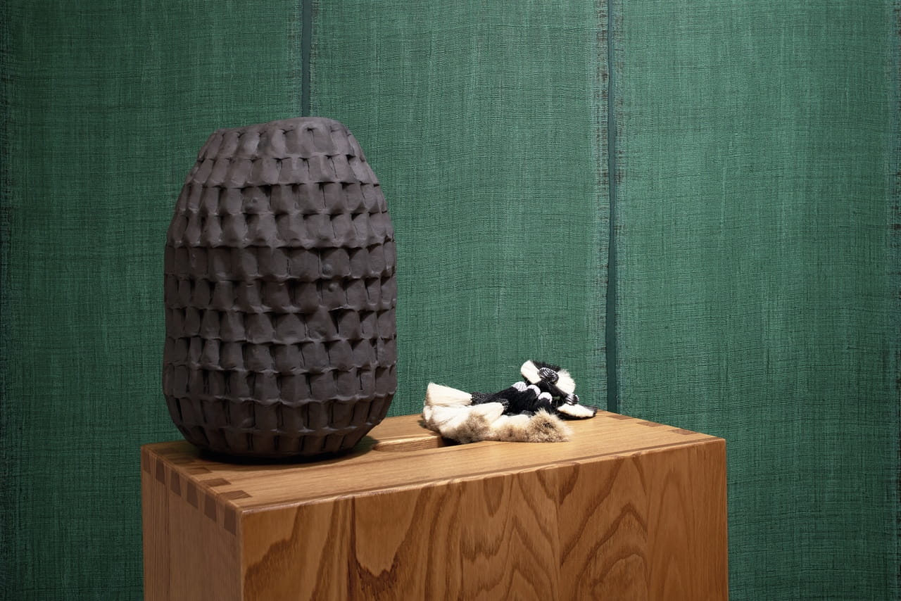 Tapeta winylowa o strukturze płótna układanego w pasy.