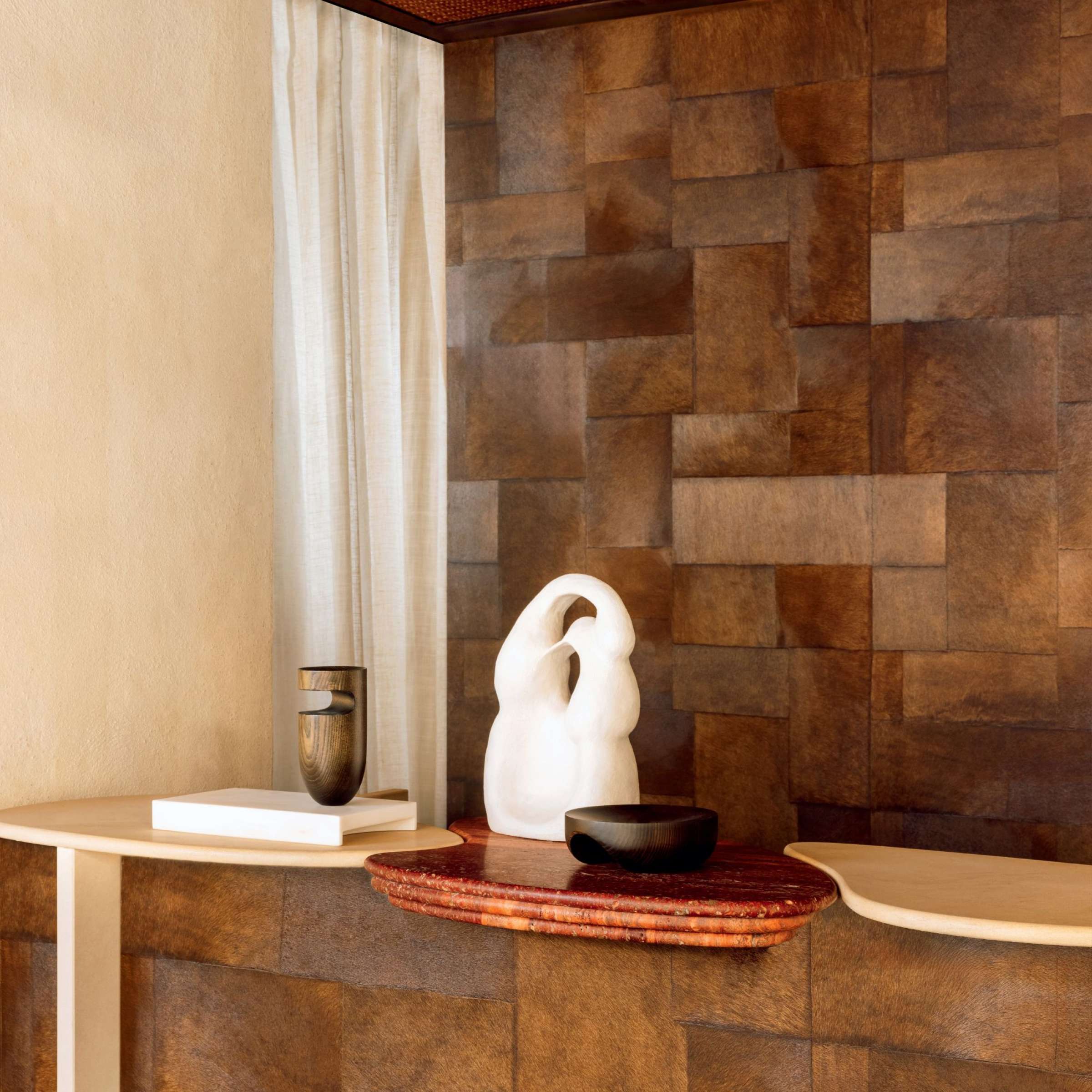 Wnętrza z tapetą Appaloosa zyskują głębię, ciepło i zmysłowość – efekt przypominający delikatnie wytarte, miękkie skóry naturalne.