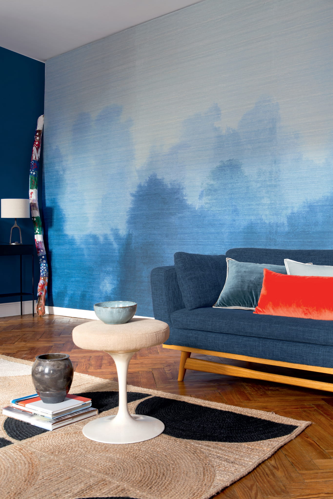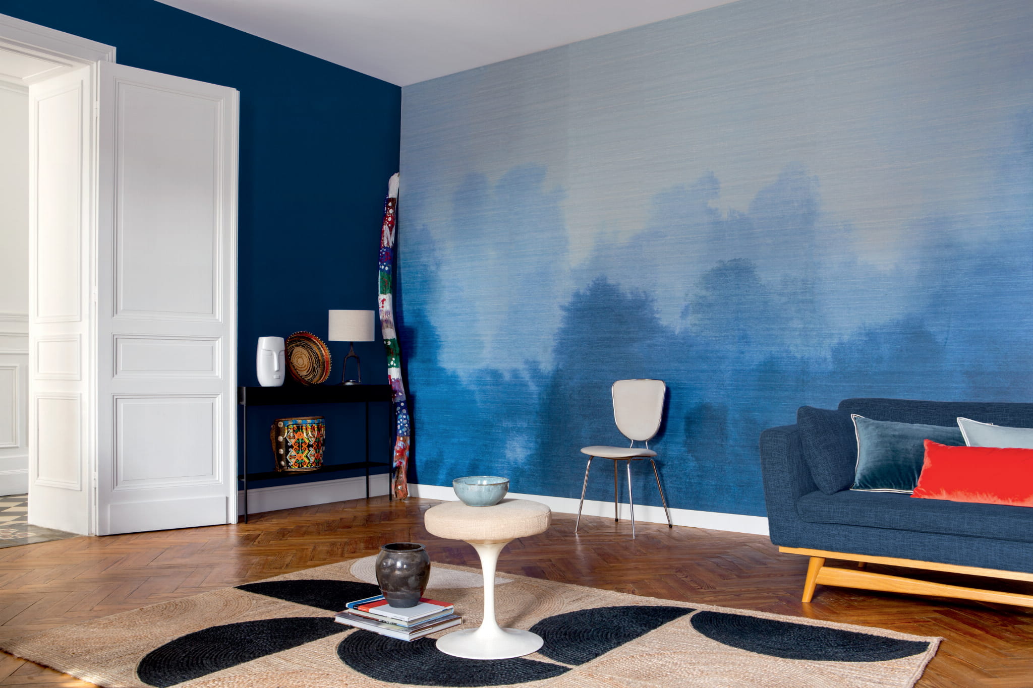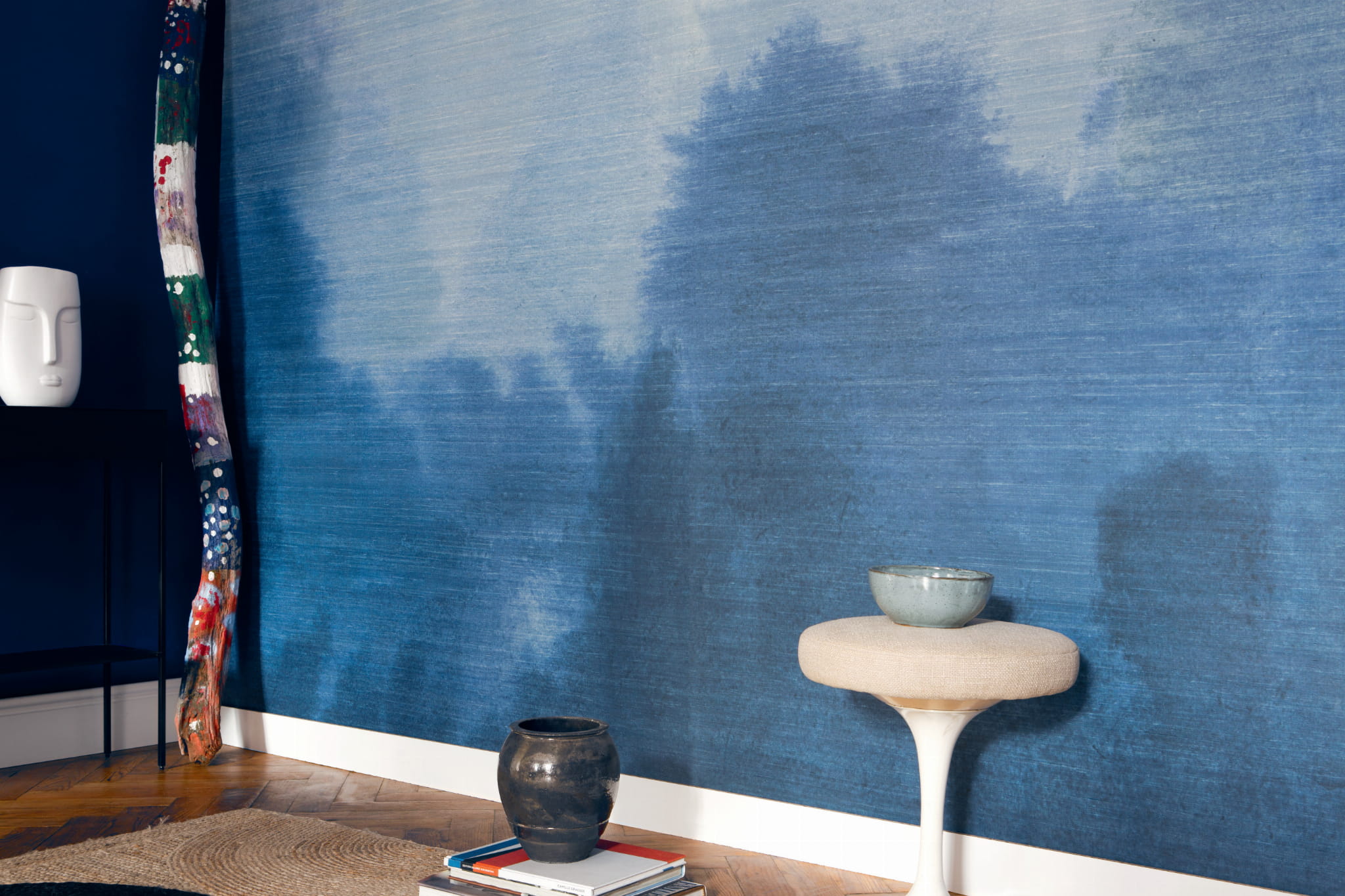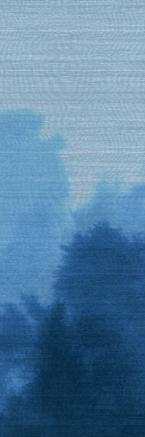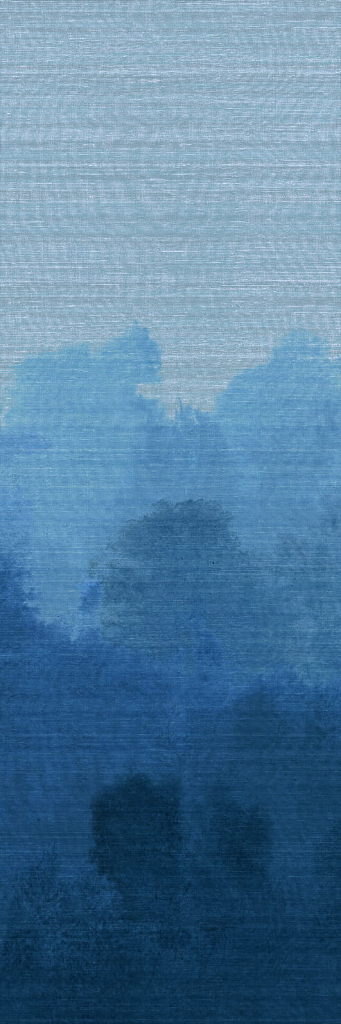 Tu pokazujemy wariant Brume charakteryzujący się wielkoformatowym wzorem graficznym. Obraz przywodzi na myśl malunek akwarelą, co daje poczucie lekkości i osobliwości. Tapeta w odcieniach błękitów i niebieskości. Wzór łączony z 4 pasów o szerokości 100cm każdy, z niepowtarzalnym nadrukiem.