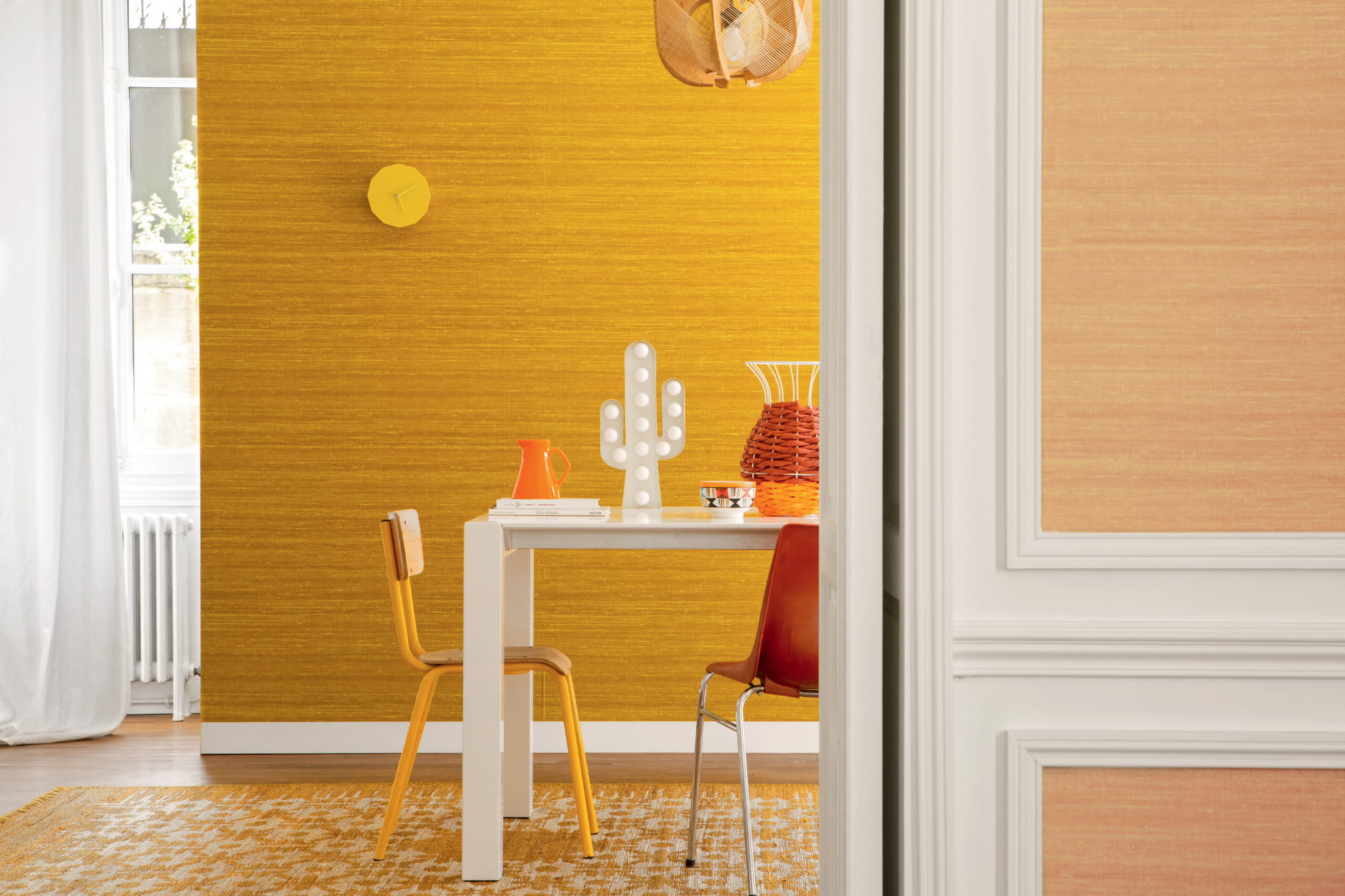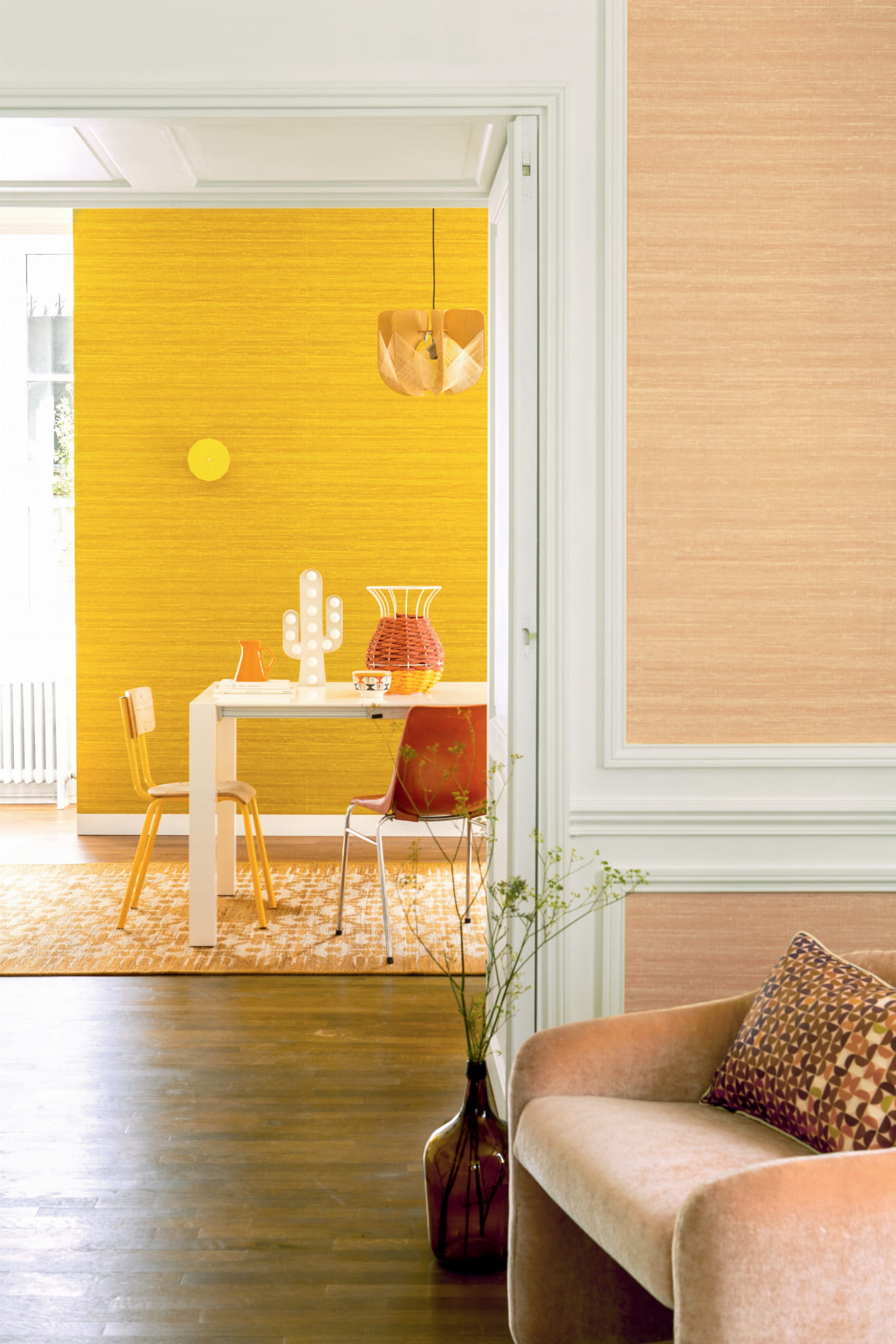 Wspaniałą realistyczna struktura jedwabnej surówki, o nie do końca równomiernym splocie, z supełkami i niedoskonałościami, będącymi przyczyną jej niezwykłej naturalności. Jak w każdej tapecie Elitis, tak i tutaj w kolekcji Soie changeante, perfekcja wykonania i zjawiskowa kolorystyka zdumiewają i inspirują. Tapeta jest dostępna w bardzo wielu zjawiskowych kolorach, również z wzorem.