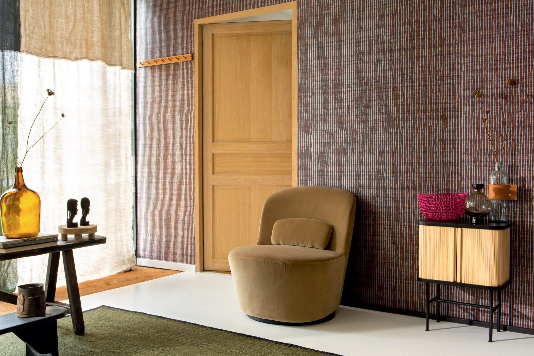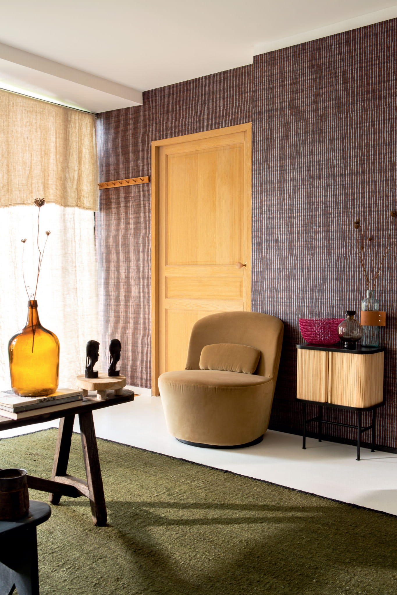 Wspaniałą realistyczna struktura jedwabnej surówki, o nie do końca równomiernym splocie, z supełkami i niedoskonałościami, będącymi przyczyną jej niezwykłej naturalności. Jak w każdej tapecie Elitis, tak i tutaj w kolekcji Soie changeante, perfekcja wykonania i zjawiskowa kolorystyka zdumiewają i inspirują. Tapeta jest dostępna w bardzo wielu zjawiskowych kolorach, również z wzorem.
