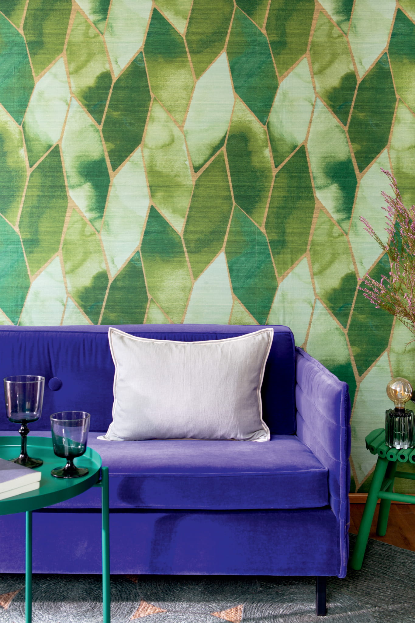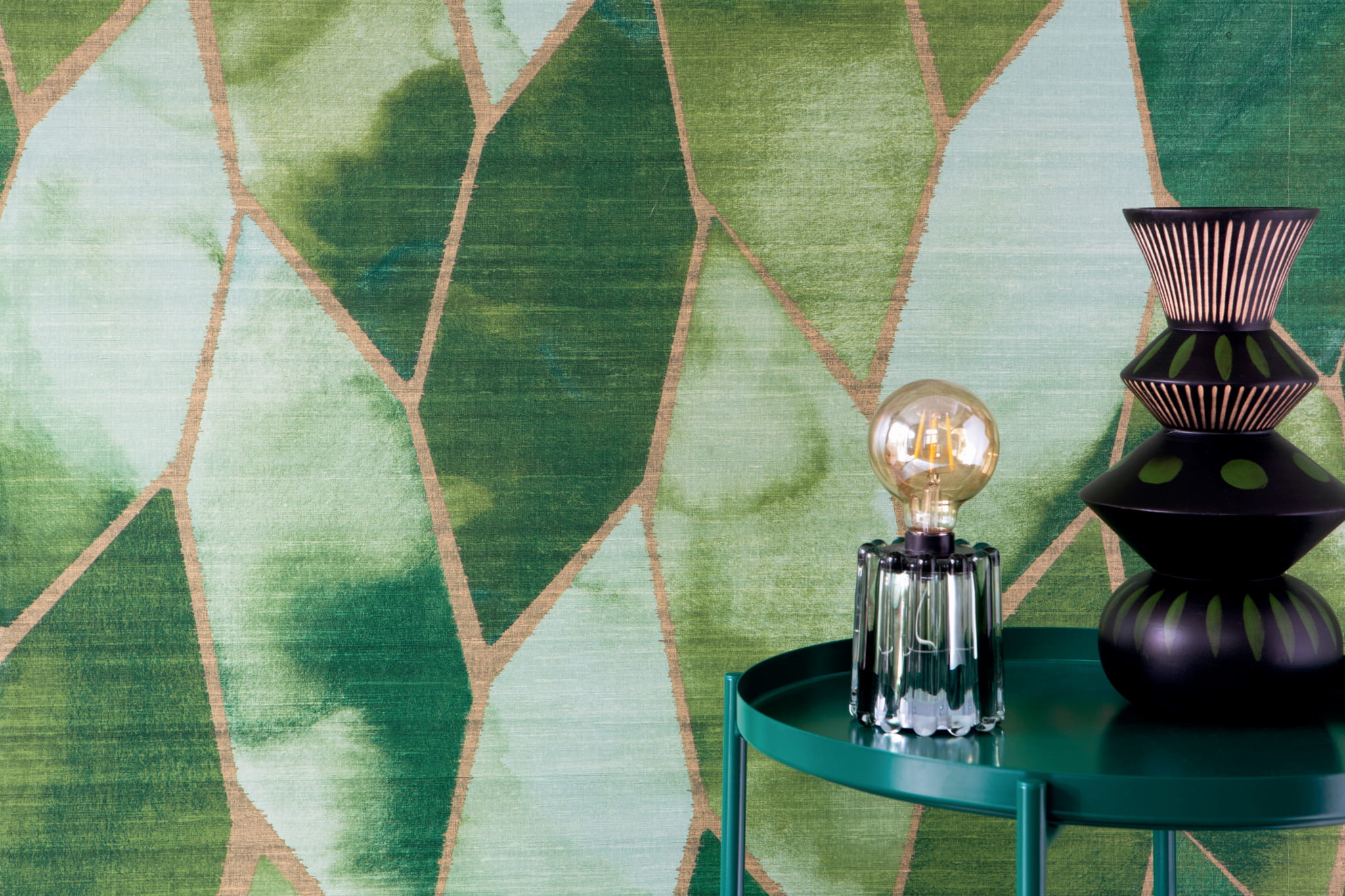 Tu pokazujemy wariant Yuzen charakteryzujący się interesującym wzorem graficznym, którego interpertacja może być wyzwaniem: my kojarzymy to z plastrem miody, liśćmi lub plecionym warkoczem. Wzór jest lekki i finezyjny, chociaż dość duży. Tapeta w kolorze zielonym.