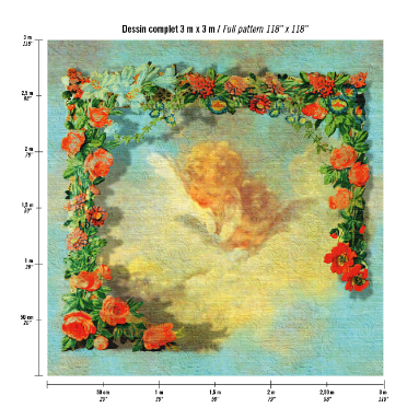 Tapeta winylowa o strukturze tkaniny, z grafiką o wymiarze 3 x 3m.